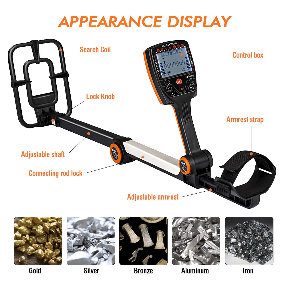 TX-630 Foldable Metal Detector Professional Gold Detector with Precise Positioning High Sensitivity Waterproof Search Coil Finde
