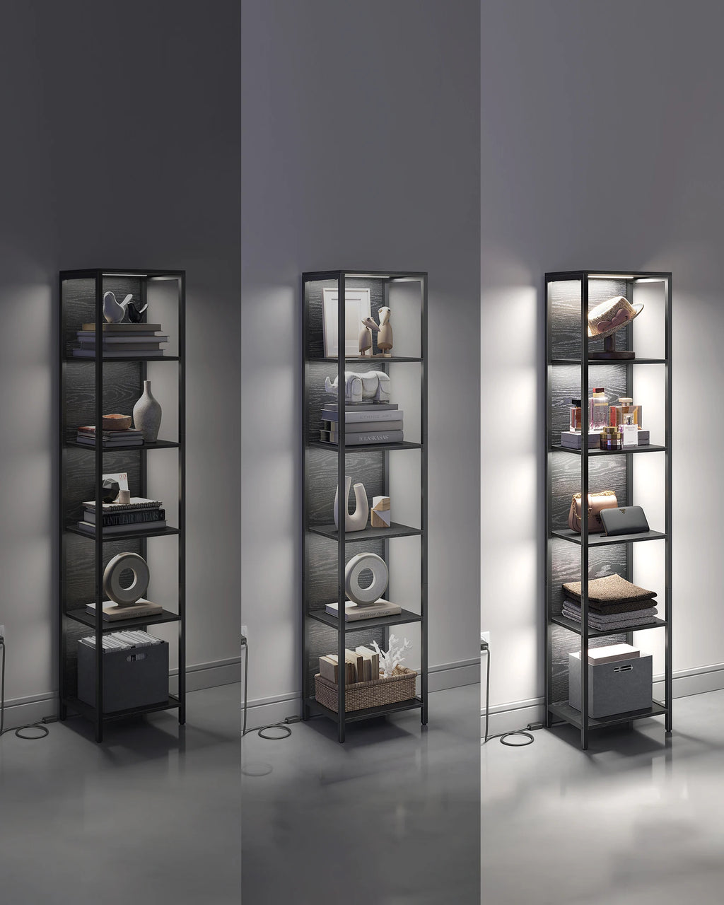 VASAGLE 6-level bookcase with adjustable LED lighting shelf with steel frame 30.3x40x178.6 cm