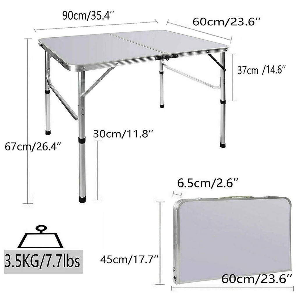 90x60x67cm Aluminium Camping Table, Portable Folding Table Small Picnic Table Laptop Desk TV Dinner Bed Home Office, White