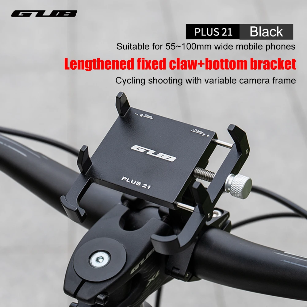 GUB PLUS 21 Motorcycle Bike Mobile Phone Stand Aluminum Alloy Cell Phone Holder Bracket Rotatable Adjustable Anti-slip for 22.2-31.8mm Handlebar