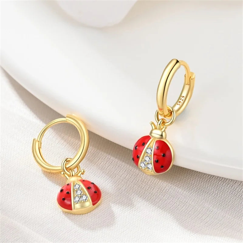 New 925 Silver Color Earrings Butterfly Firefly Ladybird Cactus Chameleon Star Double Hoop Earrings Fashion Party Unique Jewelry