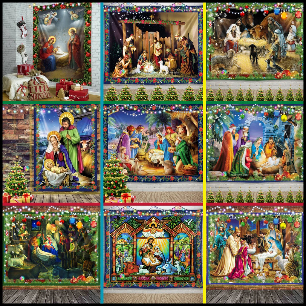 Christmas Tapestry Jesus Birth Manger Barn Wall Hanging Angel Easter Wall Decor Christ Tapestries Nativity Scene Room Decoration