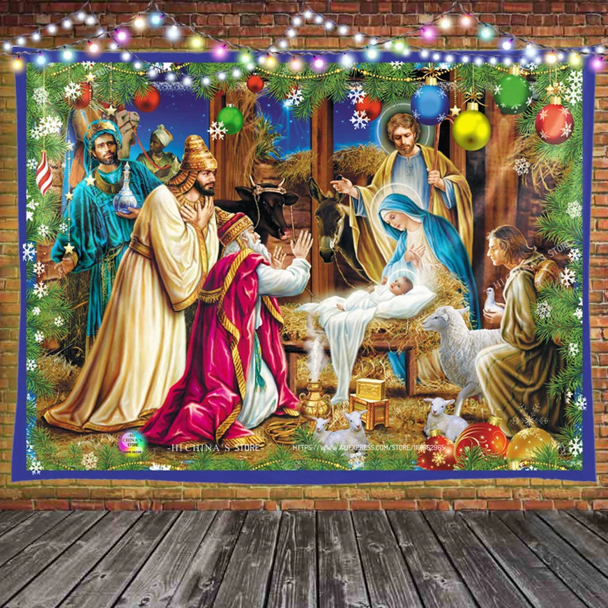 Nativity Scene Jesus Birth Christmas Wall Decor Tapestry Jesus Medieval Decoration Hanging Room For Bedroom Vintage Macrame Easter Mural Aesthetic Hippie Tapestry Psychedelic Mushroom Tapestries Anime Moon Snail Wall Hanging Cloth Alien Home Wall Decor Black Background Room