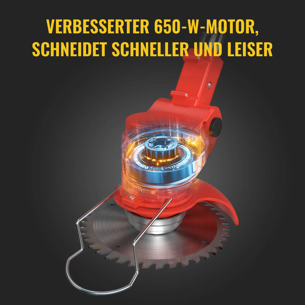 • 【Powerful and Free Mowing】The 650W pure copper motor with 8500 rpm powerful power and compact body can achieve professional-grade cutting performance. One machine can achieve all-scenario gardening operations: it can weed a large area, trim fine edges, and become a portable mowing expert.