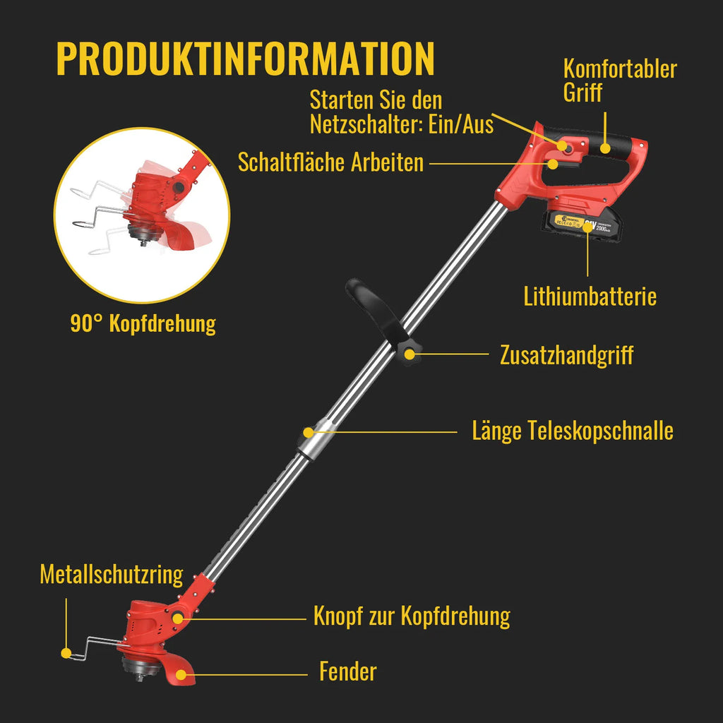 • 【ERGONOMIC DESIGN】The grass trimmers is equipped with an adjustable telescopic rod, which can be adjusted freely between 90-125 cm, and adjust the appropriate length according to different environments. The grass trimmer cordless is very light and easy to use, which greatly improves the efficiency and has an excellent sense of use. Powerful and lightweight lawn edger tool for men and women. if you have any product questions, please contact us.