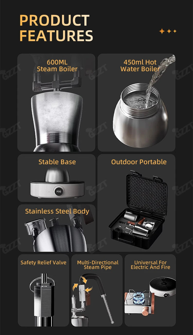 1. Capacity: It has a 600ml steam boiler and a 450ml hot water boiler.