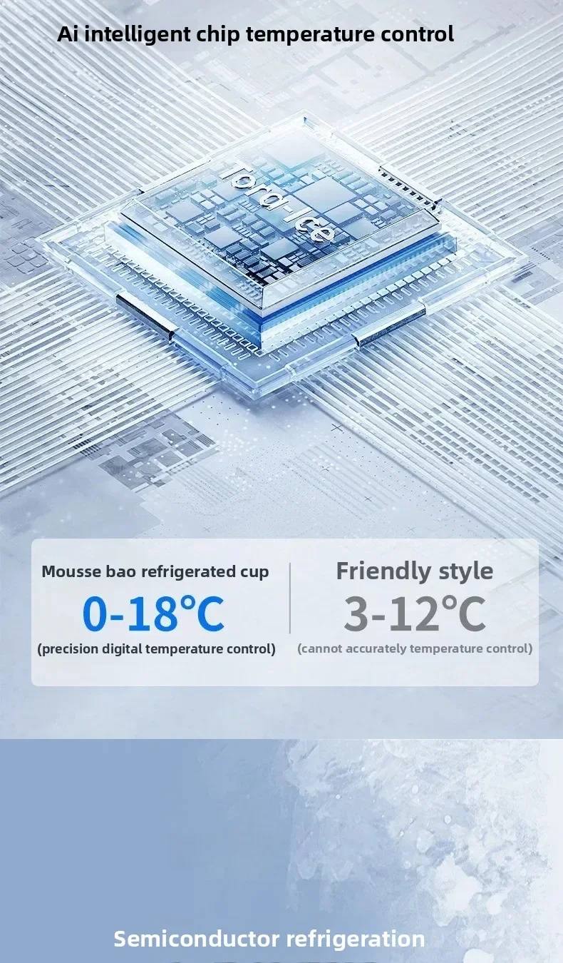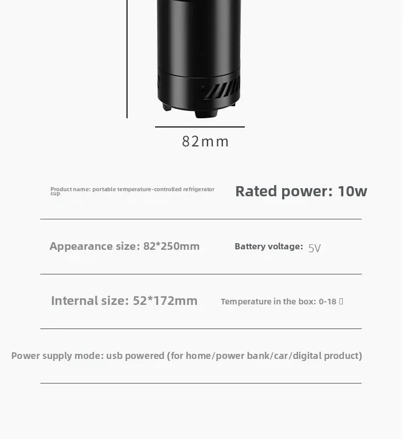 3. Setting Temperature: The temperature setting range of the refrigeration cup is 0‑18℃ when using home power; when using a power bank or an external USB interface power supply, the range is 4‑18℃.