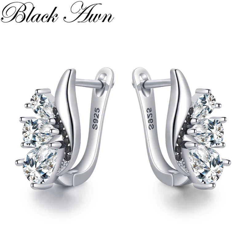 2023 New Fashion Black Hoop Earrings For Women Classic Silver Color Trendy Spinel Engagement I217