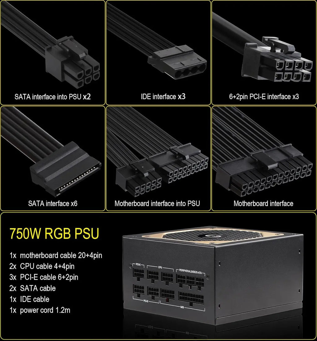 750W power output provides sufficient power for even the most demanding systems, ensuring stable and reliable performance. Not only does it deliver exceptional power, but it also features an eye-catching RGB lighting system, gives your computer case a variety of ARGB lighting modes.
