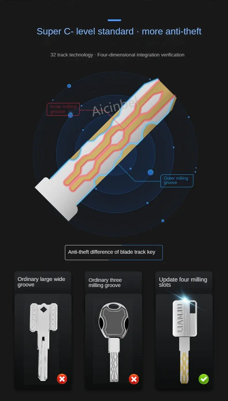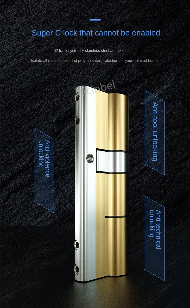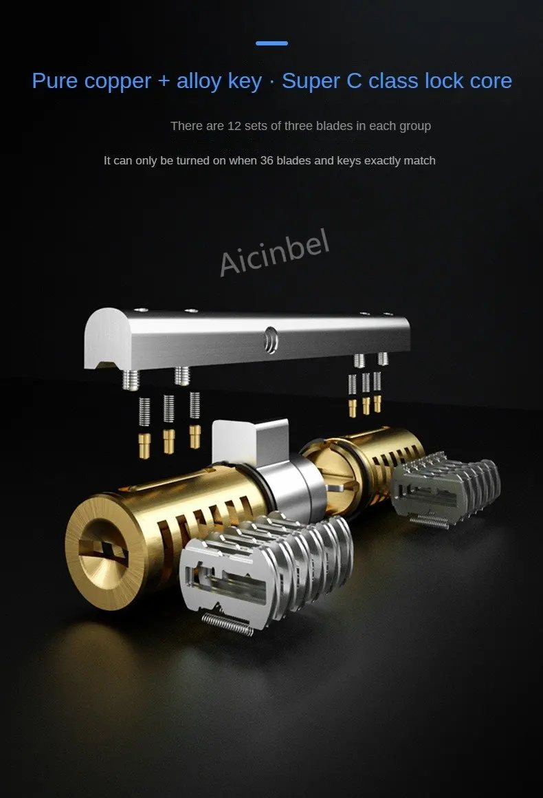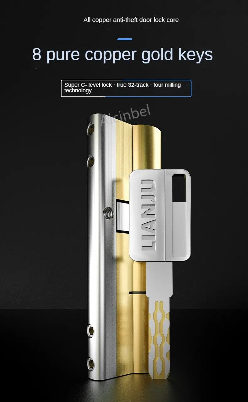 High quality European standard lock cylinder,Super C-Level Anti-Theft Door Copper Lock Cylinder,Household Cylinder,8 Master Keys