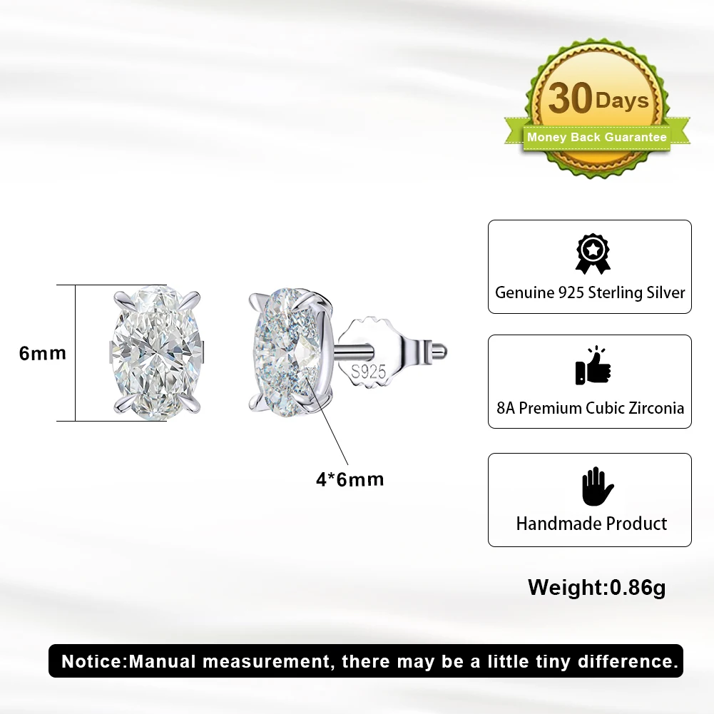 ORSA JEWELS 925 Sterling Silver Oval-Cut Zircon Earrings for Women Shiny 8A Premium Cubic Zirconia Earrings Party Jewelry