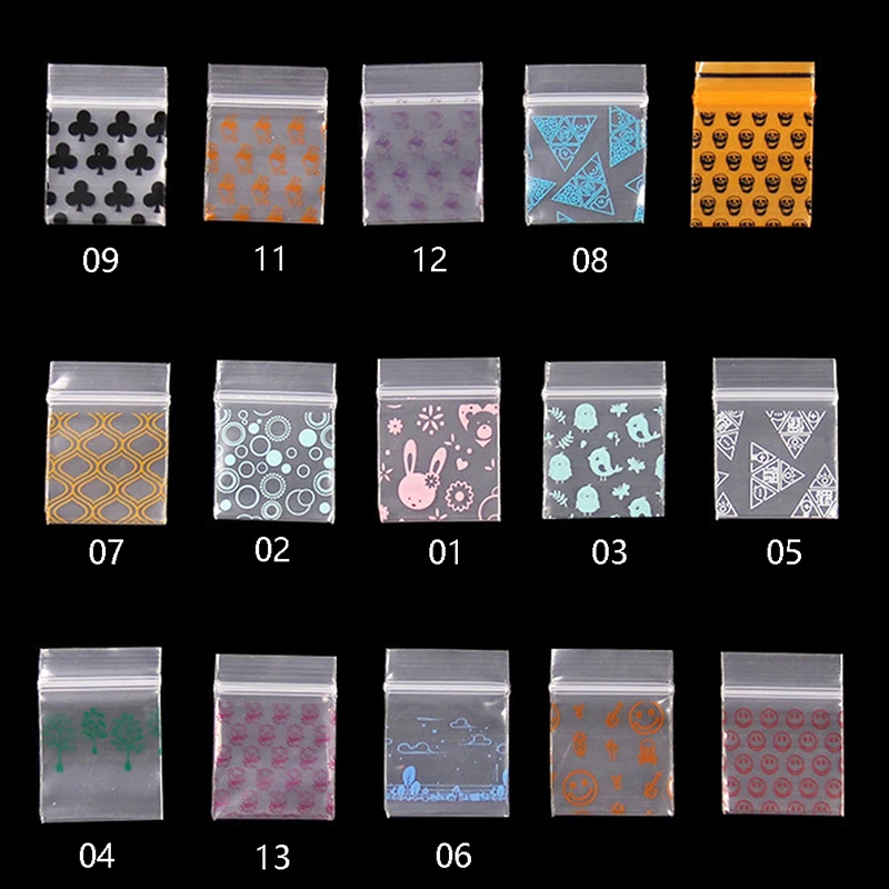 100 Pcs Small Ziplock Bags Smile Skull Pattern Portable Storage Pouch Transparent Seal Bag Baggie Accessories 2.5*3.5cm