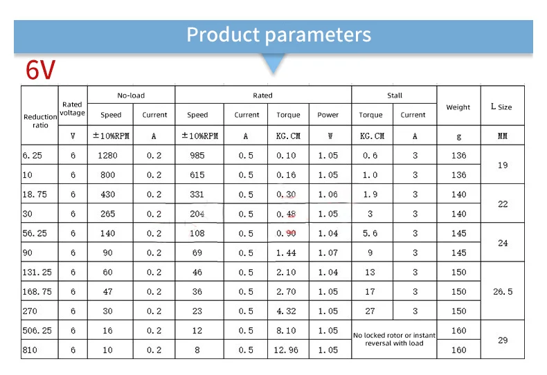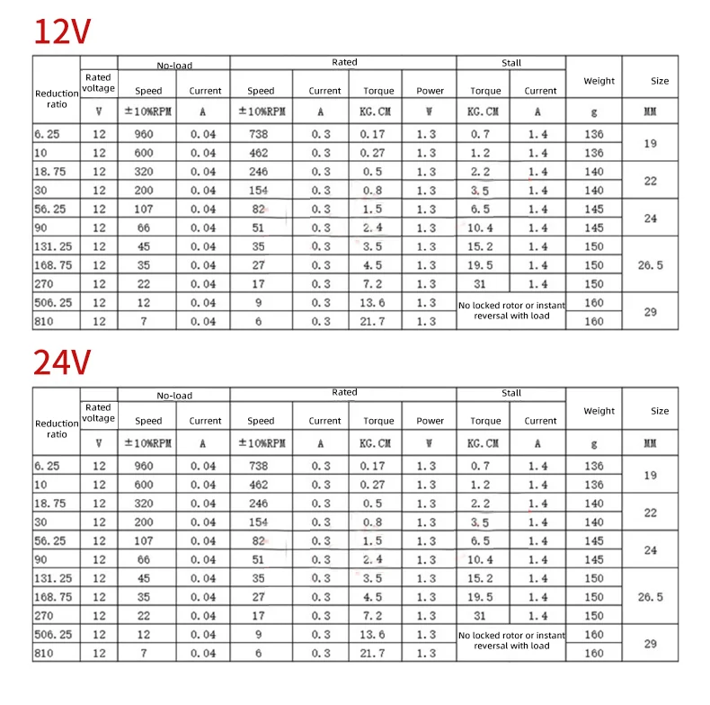 3. Load torque: rated torque of motor during load test, only for test reference; (Unit: gcm g/cm or kgcm kg/cm)