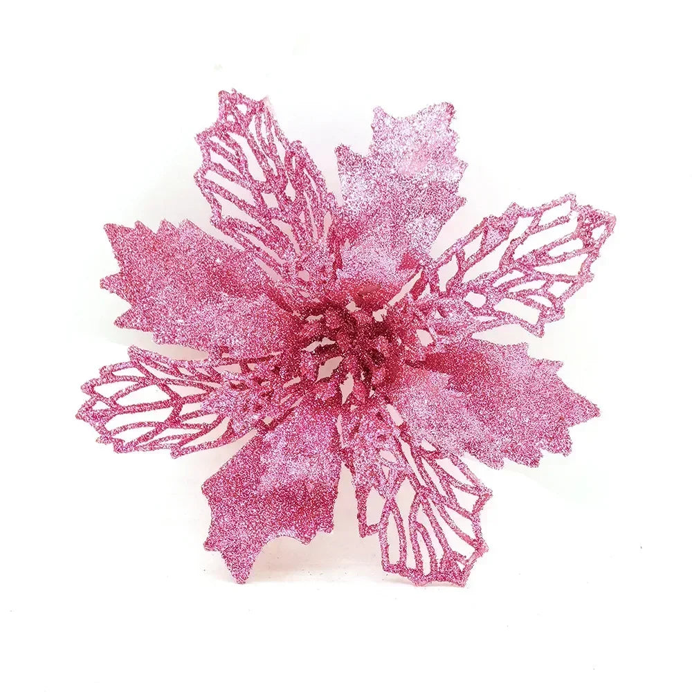 5pcs 9cm Large Artificial Flowers Christmas Tree Pendant Hollow Simulated Flower Christmas Decoration For Wedding Party New Year