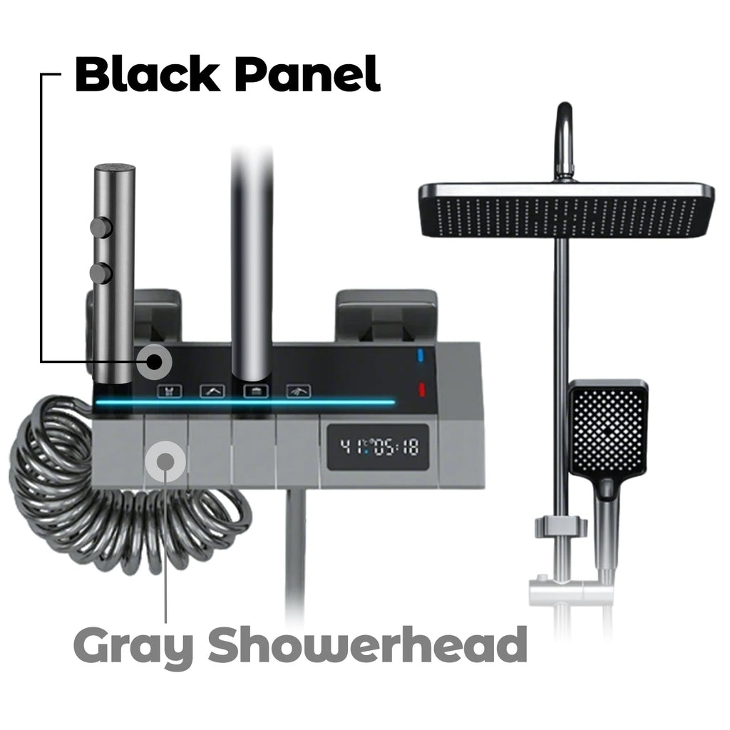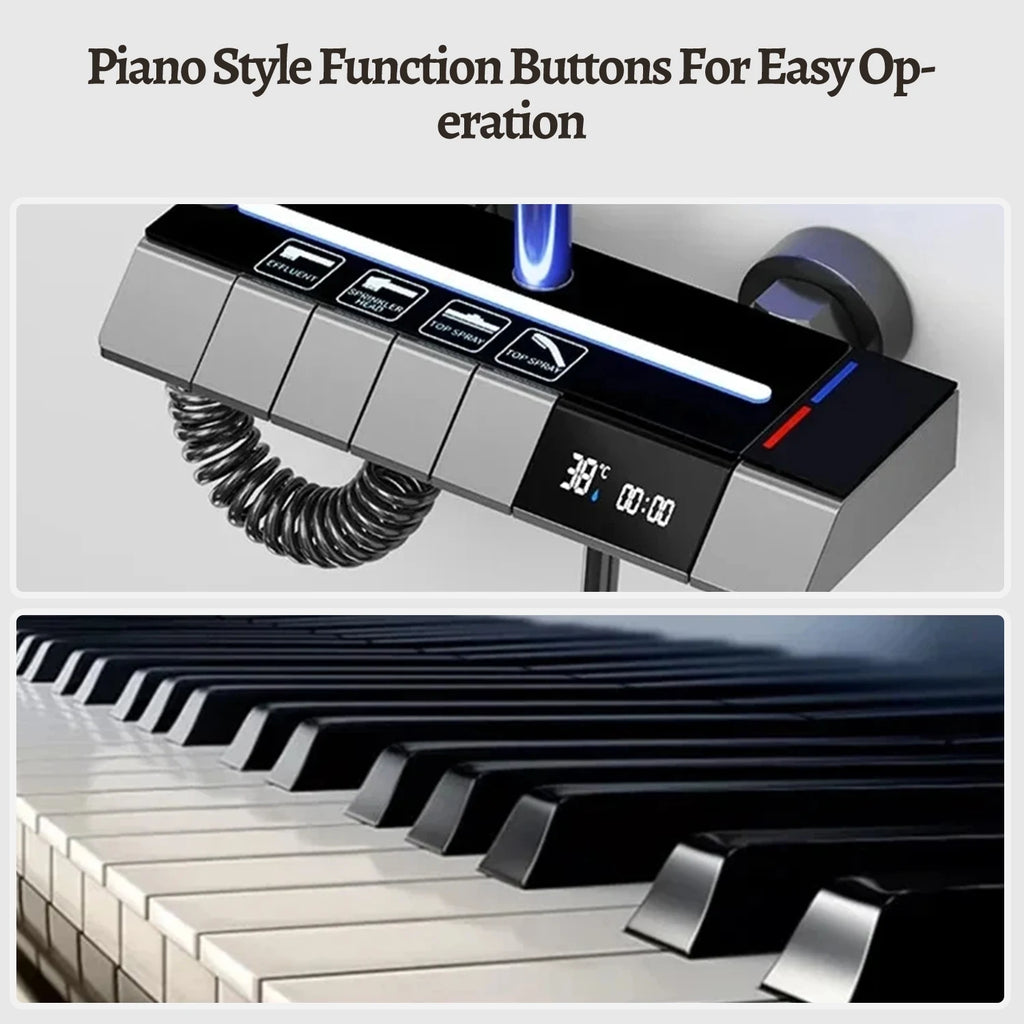Bathroom Shower Head Set Brass Mirror Surface Thermostatic Bathtub Faucet Digital Display LED Strip Hot Cold Shower System