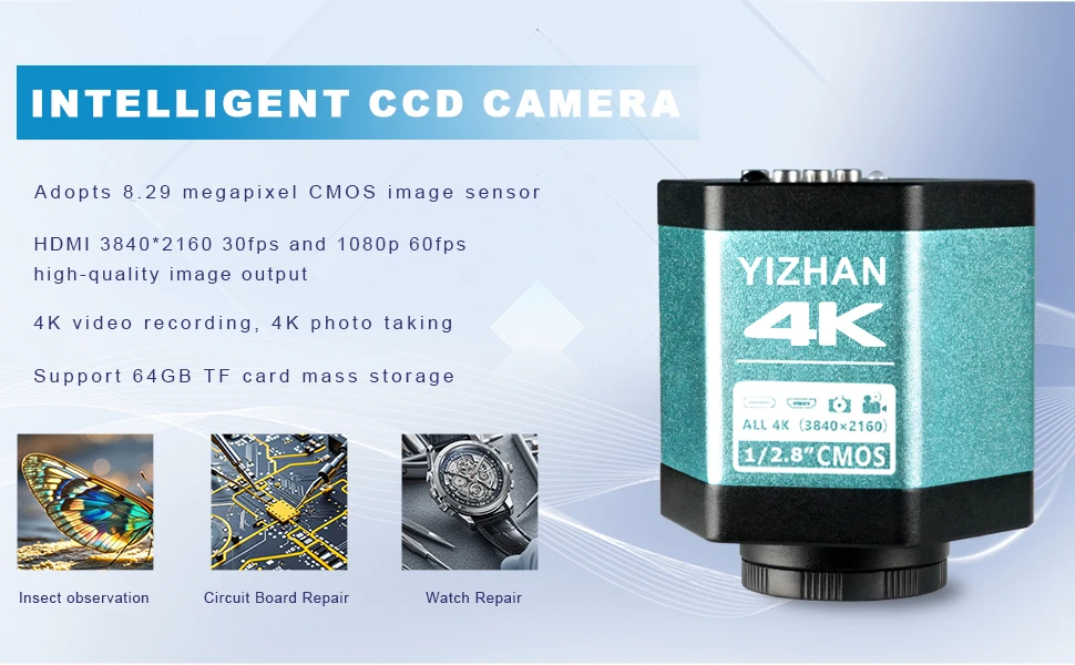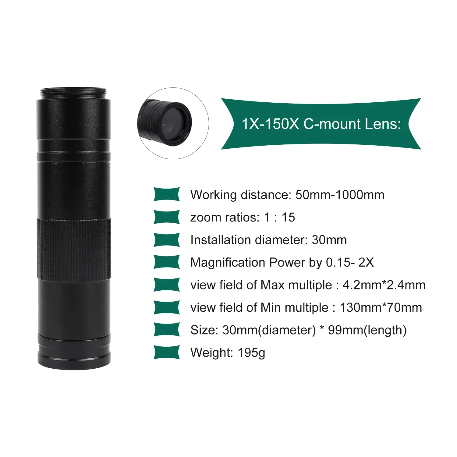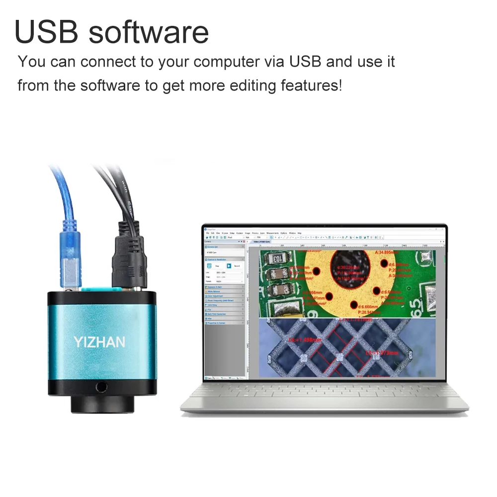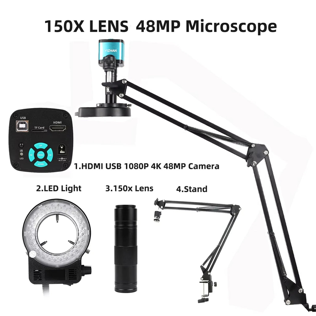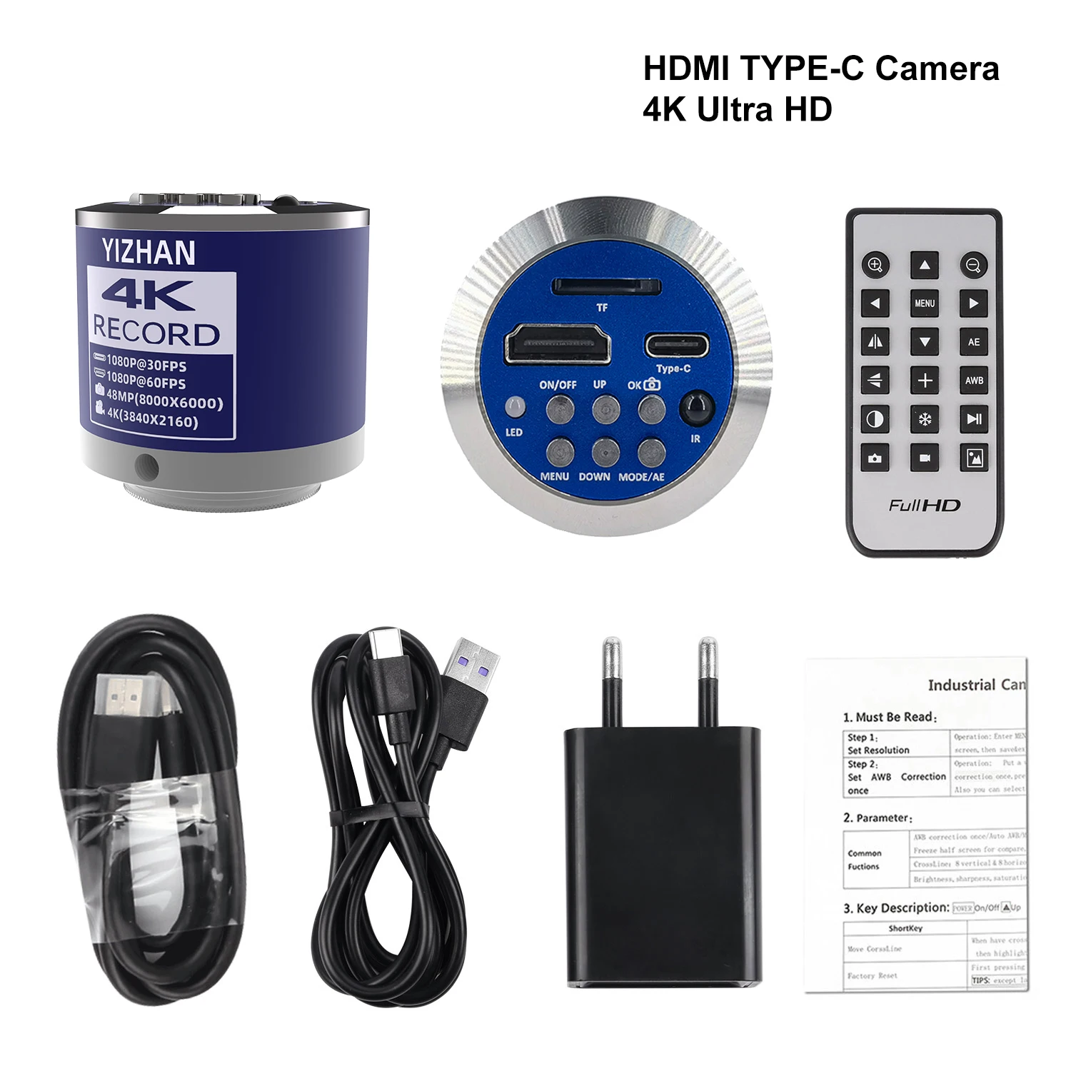 Yizhan 4K 48MP HDMI VGA USB Industrial Video Microscope For PCB Soldering 1080P HD Digital Camera 1-150X Zoom C Mount Lens 2K