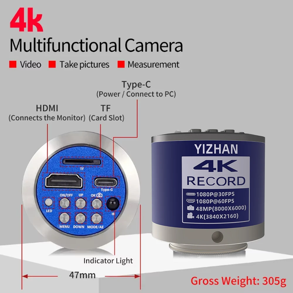 XHU3011 4K 48MP Ultra HD HDMI USB-C Microscope Camera