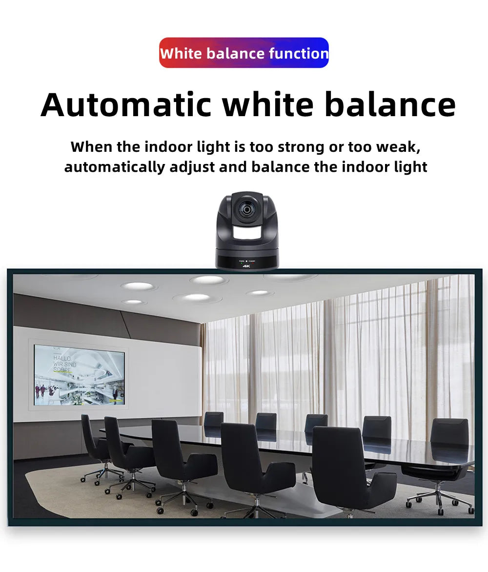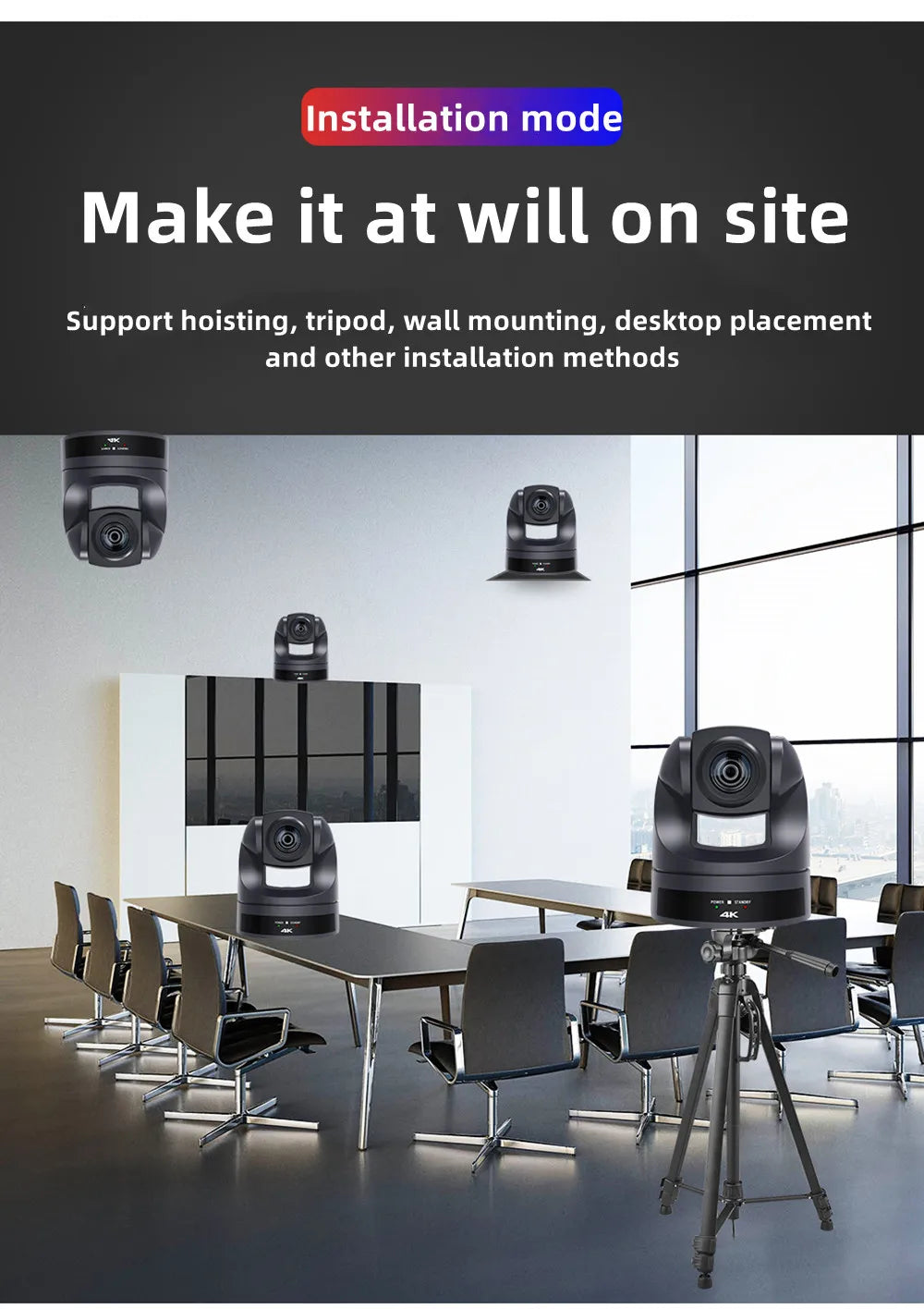 HK10UH is a 4K ultra-high definition pan-tilt camera, which uses a 1/2.8-inch CMOS high-quality image sensor, can output 4K ultra-high definition video with a ratio of 16: 9, and realize high-speed, silent pan/tilt operation and shooting objects in a large area with little jitter. It is an ideal choice for video conference, distance teaching and enterprise training.