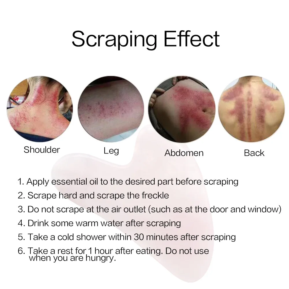 • 3. Use upward motions to move the guasha plate gently over your forehead,cheeks,around the lip area and neck. Close your eyes and roll gently over your eyelids if you have puffy eyes or bags under your eyes.