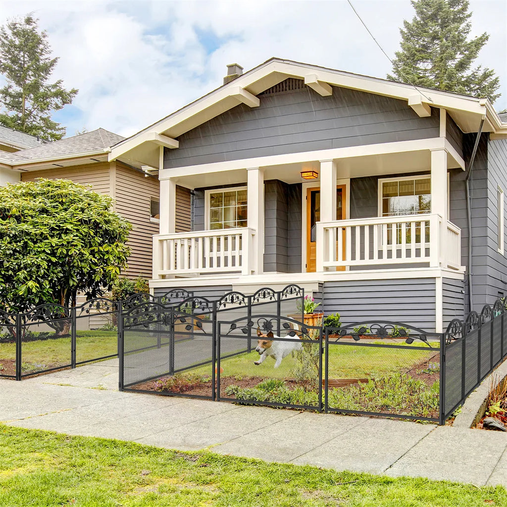【43.3-inch High Play Pen】The fencehas43.3-inchtall, higher than before, more suitable for small puppies and dogs, prevents from jumping and escaping, with a lock to keep the gate safe and dogs contained inside, these fences are topped with ornamental piecefor a beautiful landscape, will easily blend with your home, yards, and the neighborhood