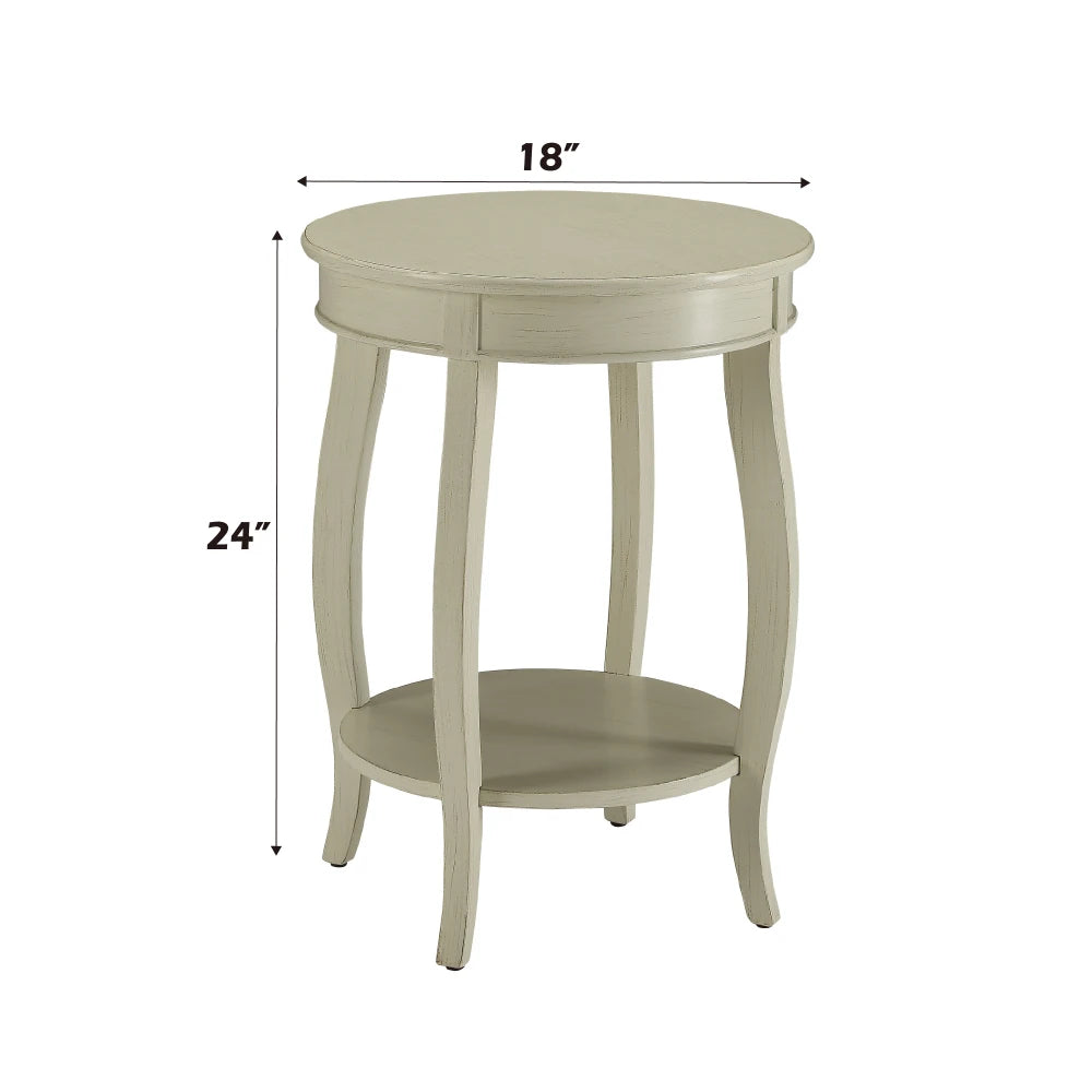 • Round Leg Table, Open Storage: Bottom Shelf, Wooden Cabriole Leg