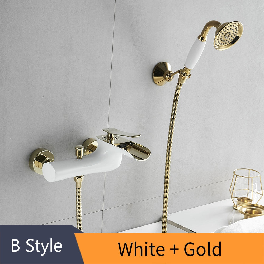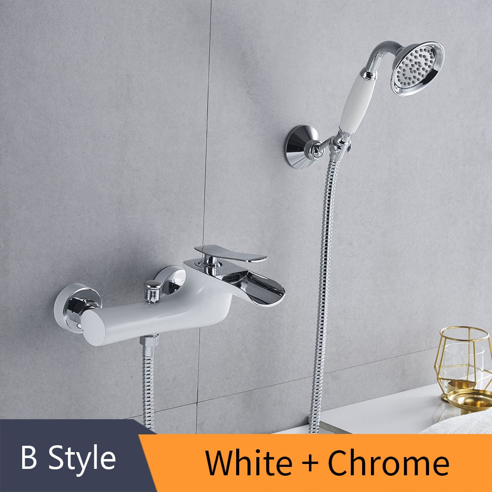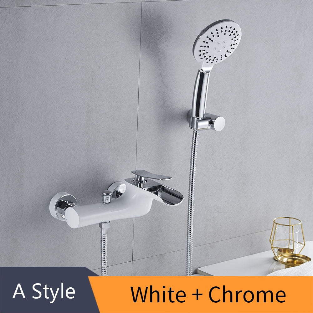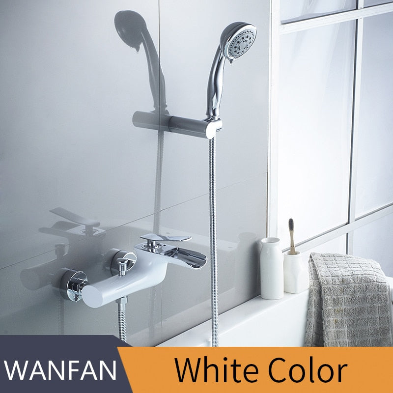 Bathtub Faucets Chrome Bath Shower Set WhiteShower Set Bathtub Mixer Tap Dual Contral Shower Wall Mounted For Bathroom WF-6018