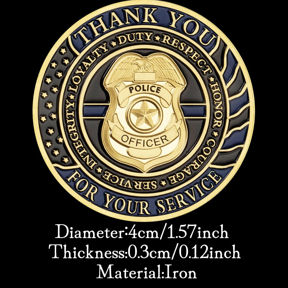 Thank You for Your Service Challenge Coin Prayer God Bless The Police Thin Blue Line Golden Plated Commemorative Coin