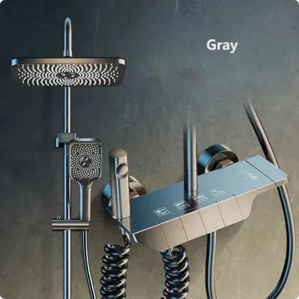 Bathroom Shower Faucet Set 4 Functions Digital Display Shower Thermostat Gray Black High Pressure Discharge Copper Taps