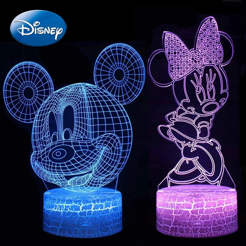 Disney Mickey Minnie Mouse 3D LED Lamp Anime Figures Night Light Table Lamps USB Sleep Neon Lights Home Decor Kids Birthday Gift
