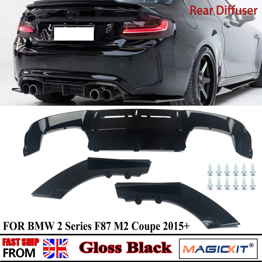 3PCS Rear Lip Spoiler Bumper For BMW M2 Diffuser F87 Coupe M2C Competion 2015+ Gloss Black