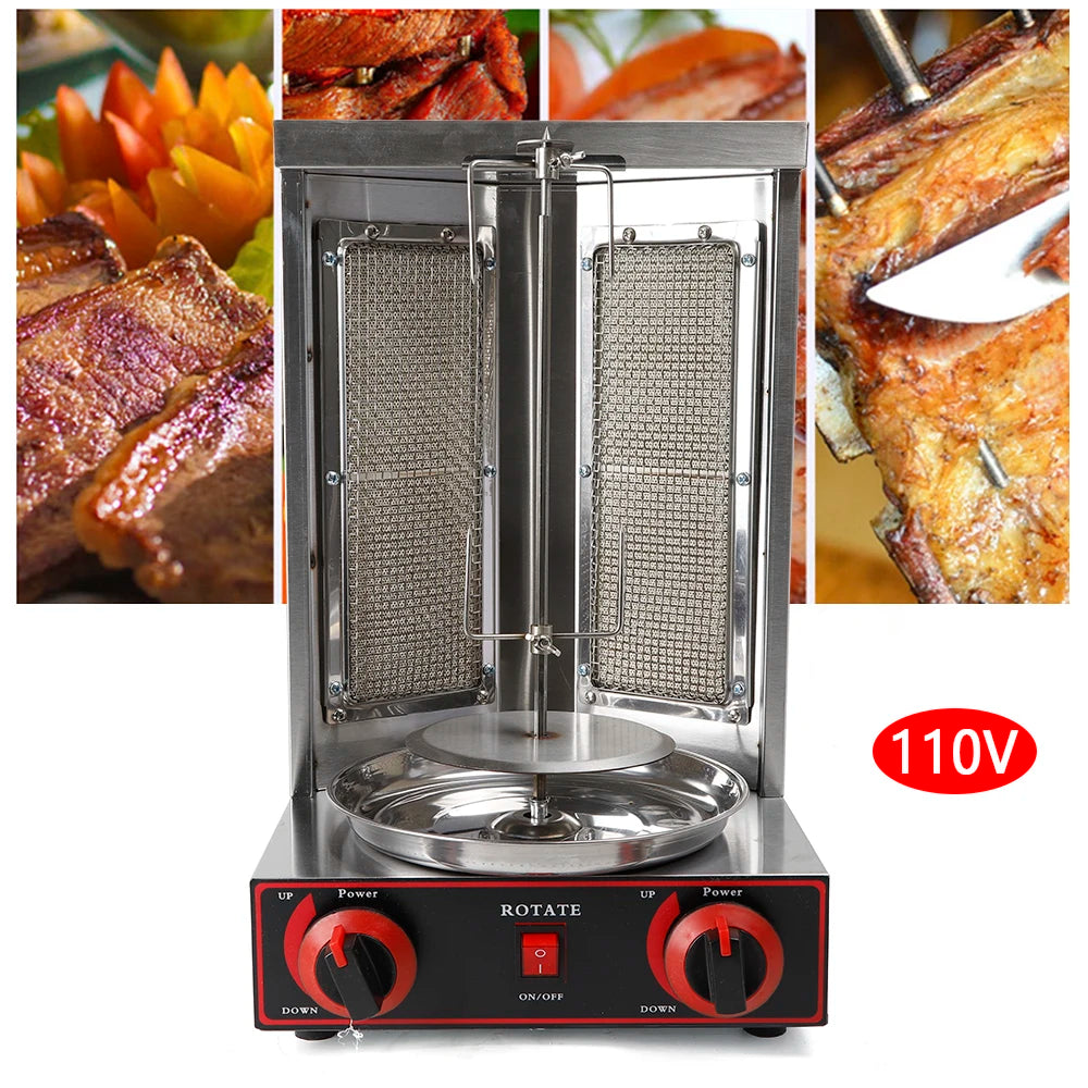 Doner Grill 3000 W LPG Kebap Grill 220 V Gas Doner Kebab Machine for Chicken Turkey Tacos Kebap, Stainless Steel, Black