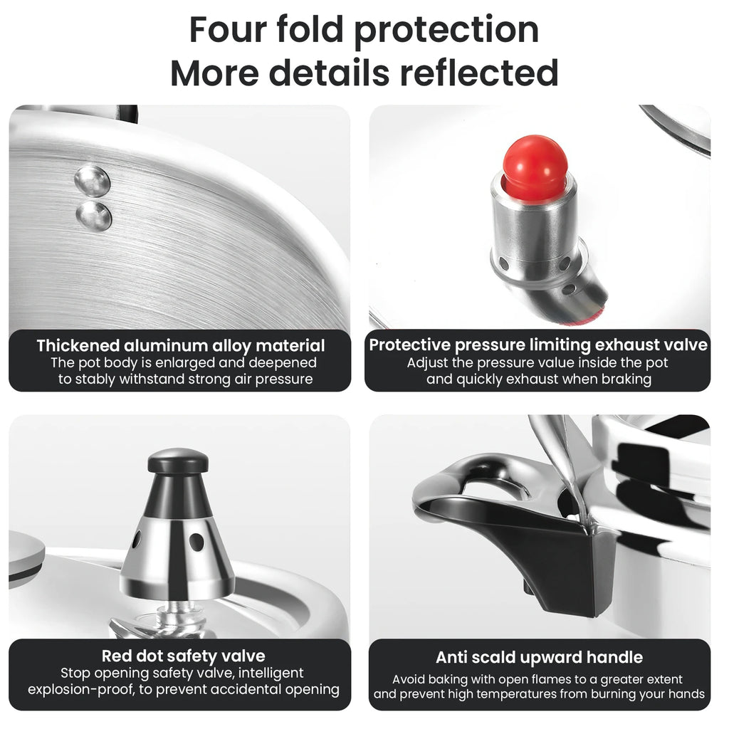 [Easy to use] The pressure cooker adopts a convenient switch design, which can be easily opened and closed, making it fast and convenient to use.