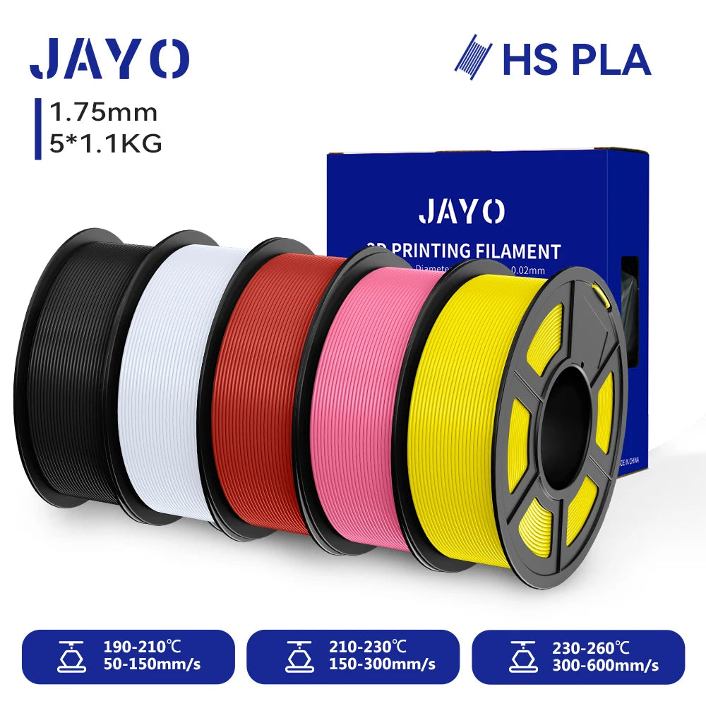 1.【Print Faster】 -JAYO high-speed 3D printer PLA filament, designed to turbocharge your printing from slow to swift. Experience a colossal 500% increase in flowability, ensuring smooth printing even at speeds exceeding 250mm/s, without clogs or filament shortages. Bring your ideas to life with high-speed printing, on average, save 70% printing time.