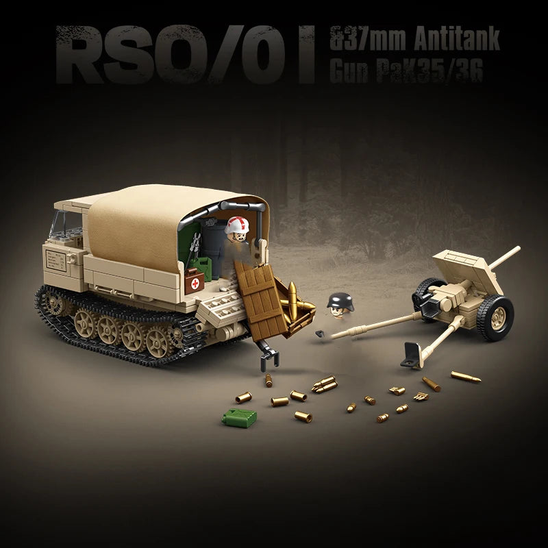 Military Tank WW2 German Army Building Block RSO/01 Track Tractor And 37mm Antitank Gun Pak35/36 Weapon Model Figure Bricks Toys