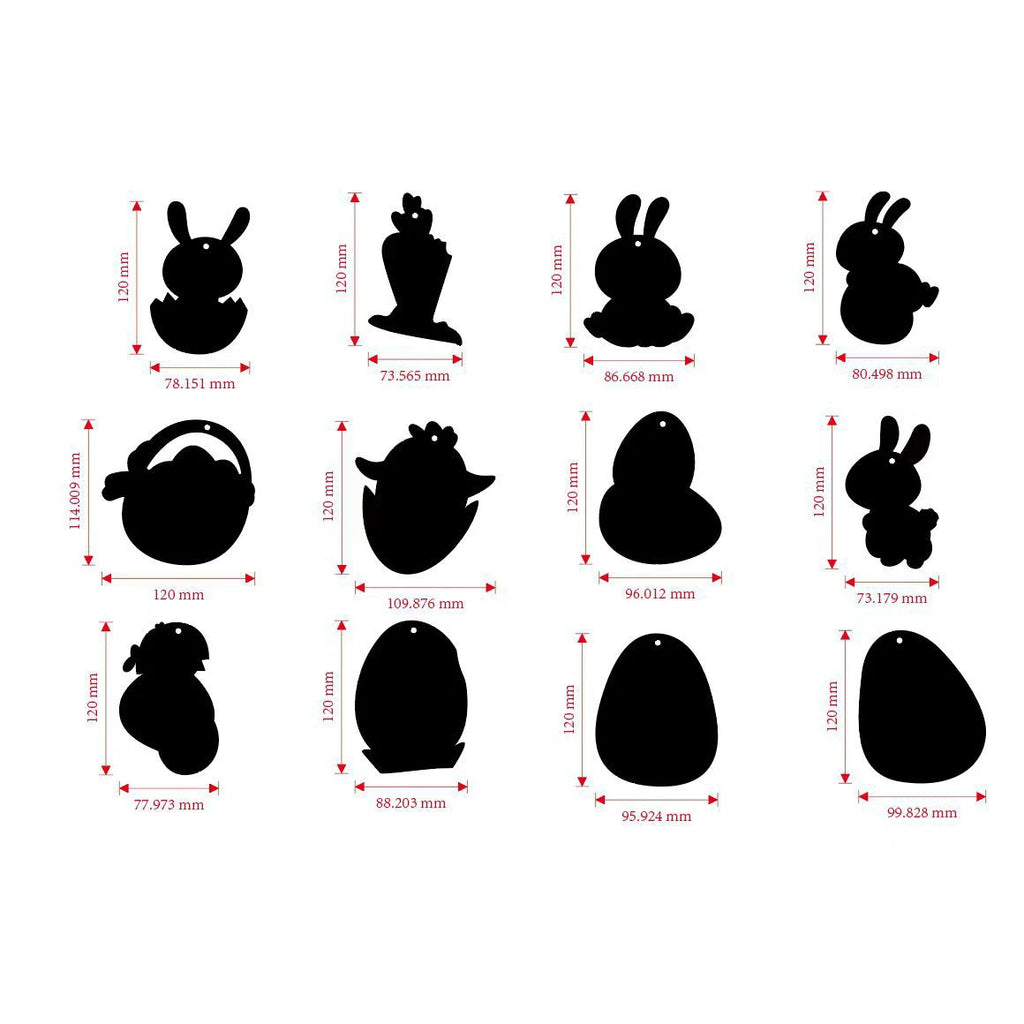 【12 Cute Easter Elements Scratch Art Cards】We design 12 different styles for easter shapes rainbow scratch paper, like bunny, rabbit, carrot, colored eggs, cross, chicken, gnome, sheep, basket, eggshell ect,which is adorable and exquisite with 12 cm long. The front side is black matte layer and the back side is blank label cards. When you scrape off the matte layer with a stylus, the rainbow colors will appear