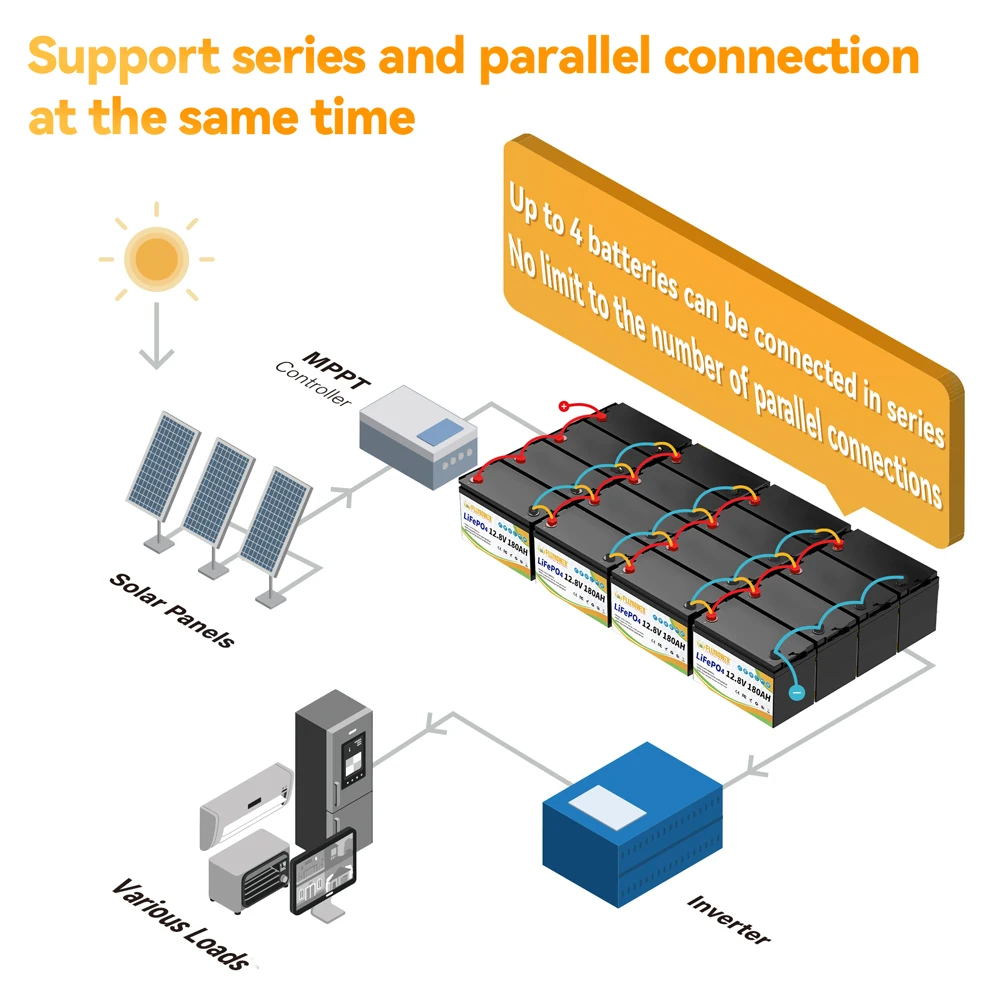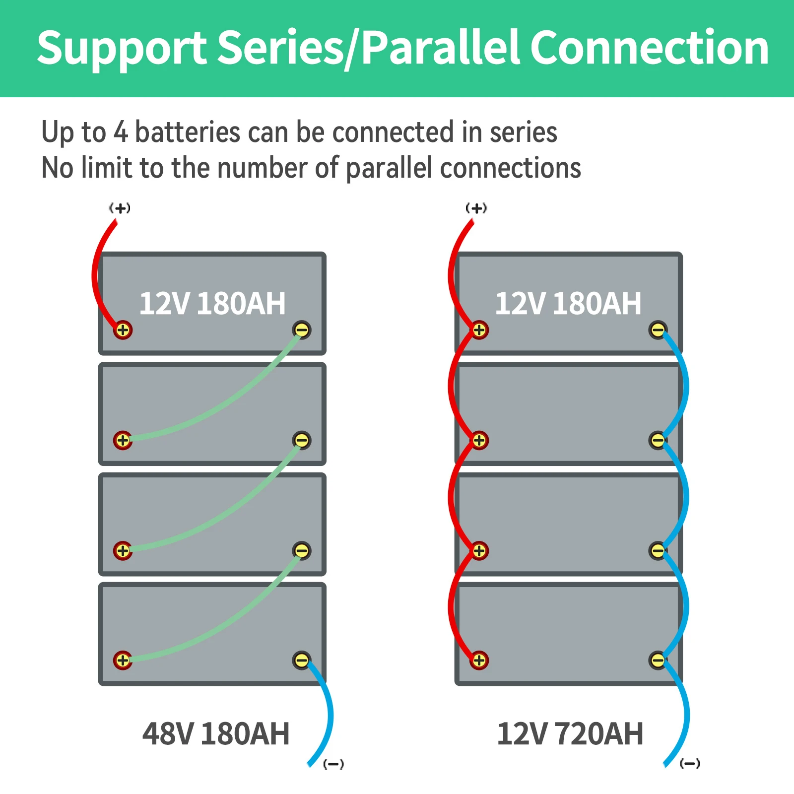 Max. Expansion (Parallel & Series):Up to 4 pcs batteries in Series,there is no limit in parallel.