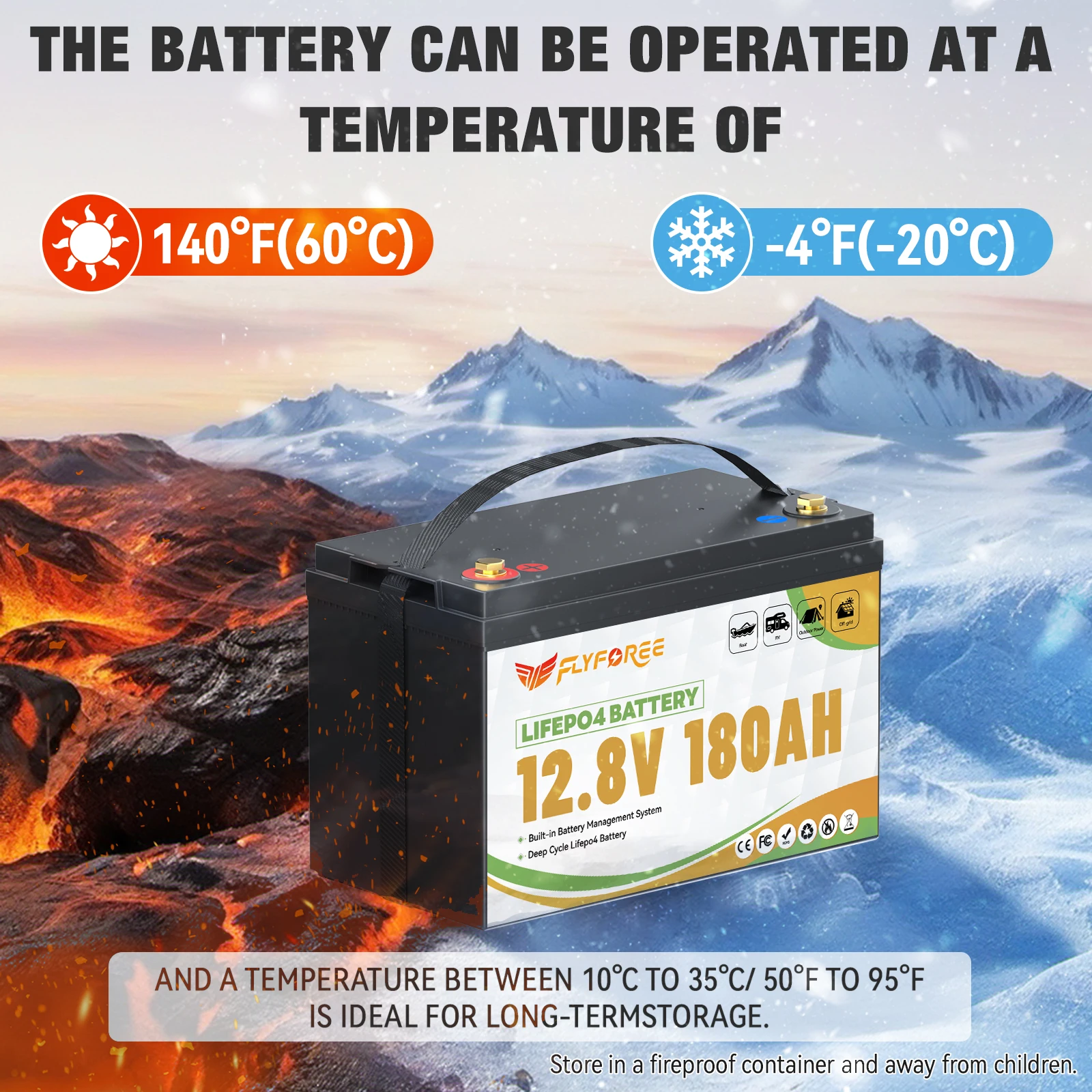 【100A BMS & Low-Temp Protection】 BMS (Battery Management System), over-charging protection, over-discharging protection, high/LOW temperature protection, short-circuit protection, over-current protection. And keep the balance between cells.