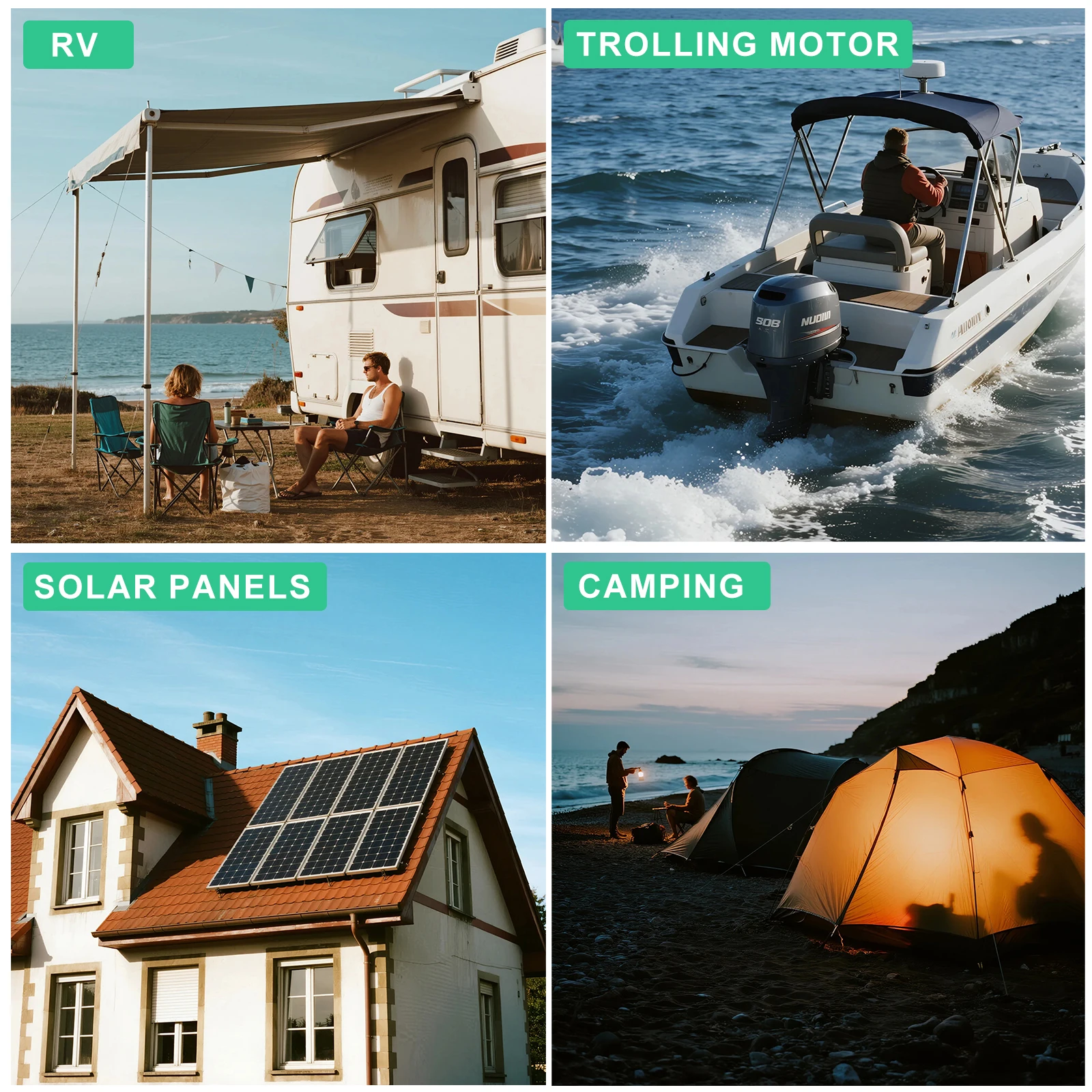 Solar Panel Power Bank System, Solar VRLA 12V 24V 36V 48V Off-grid Applications, Trolling Motor, Electronics, Industrial and Medical Equipment, Golf Carts, Hunting, Lawn and Garden Tools, Portable Tools, Toys and Hobby, Emergency Lighting, Leisure, RV House, Security and more. (Not for Motorcycle ATV Engine Starts)
