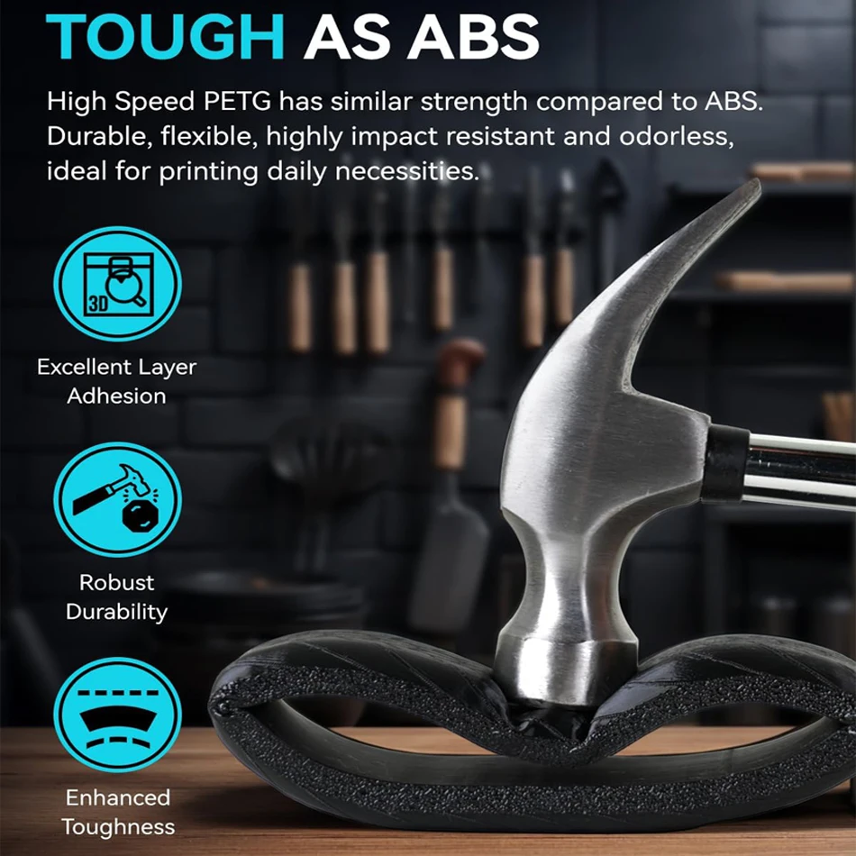 With its high impact resistance, PETG is perfect for printing parts that need to endure bumps and drops, ensuring long-lasting performance without cracks or breaks.