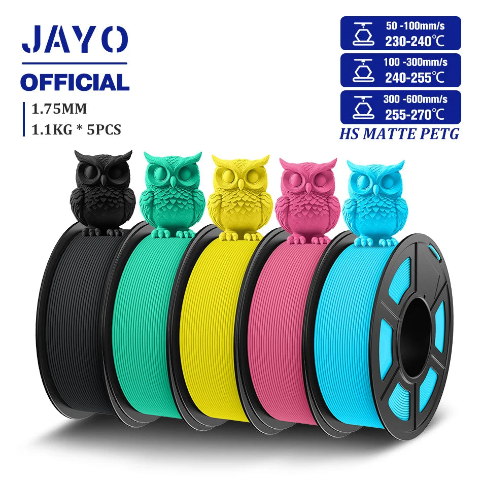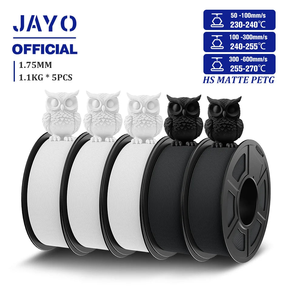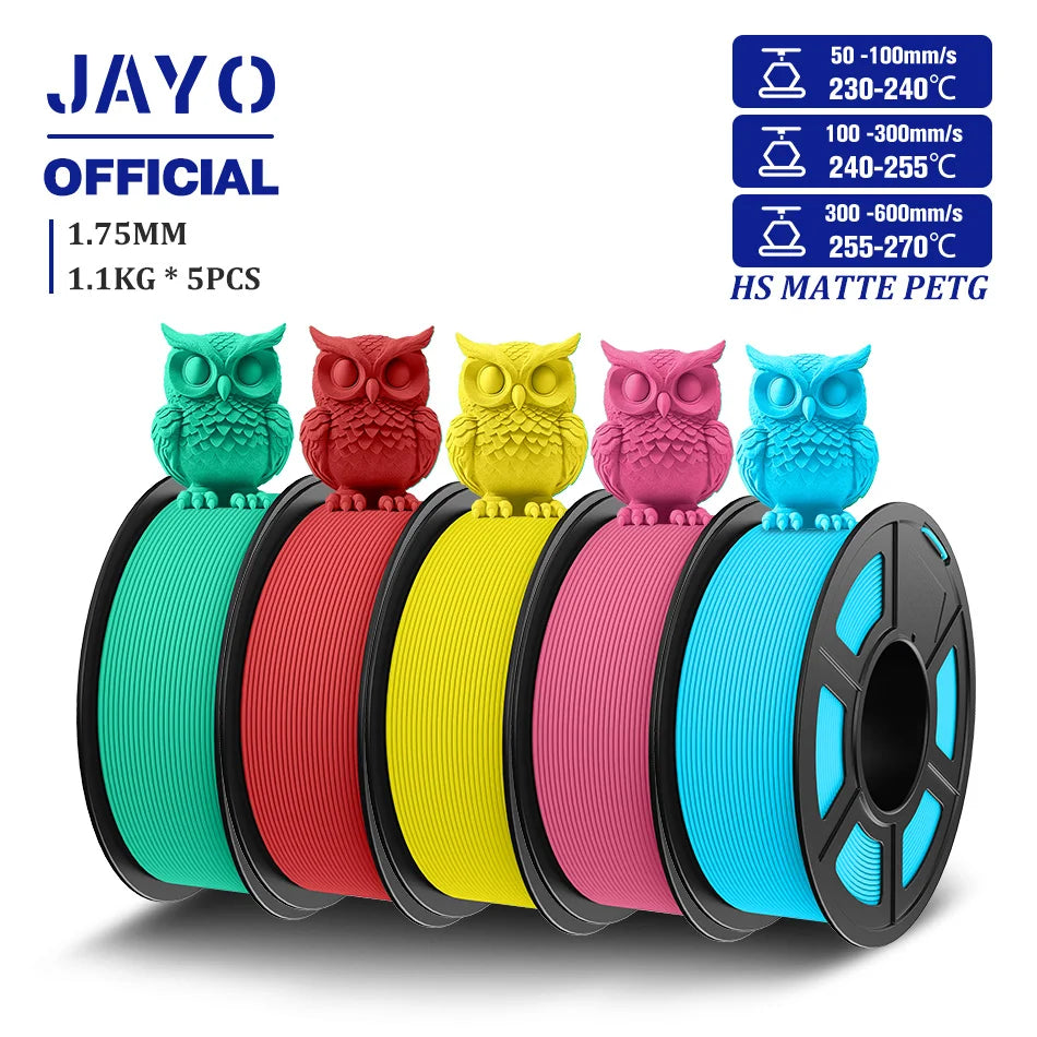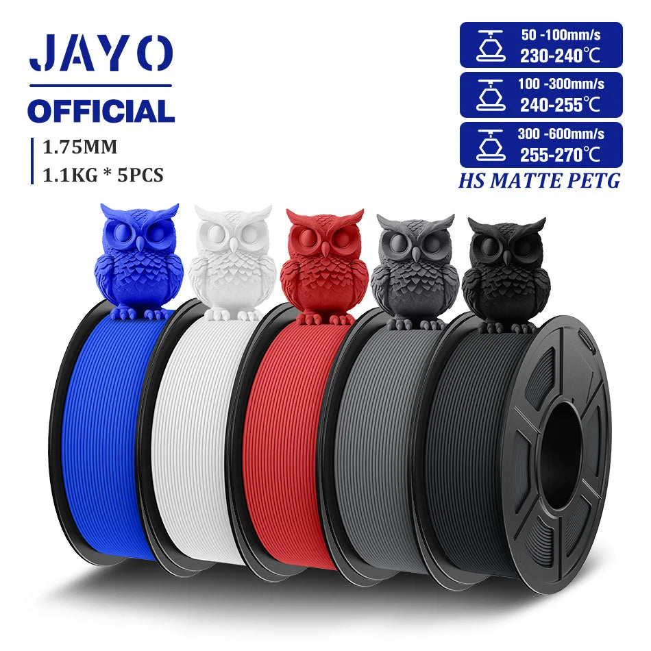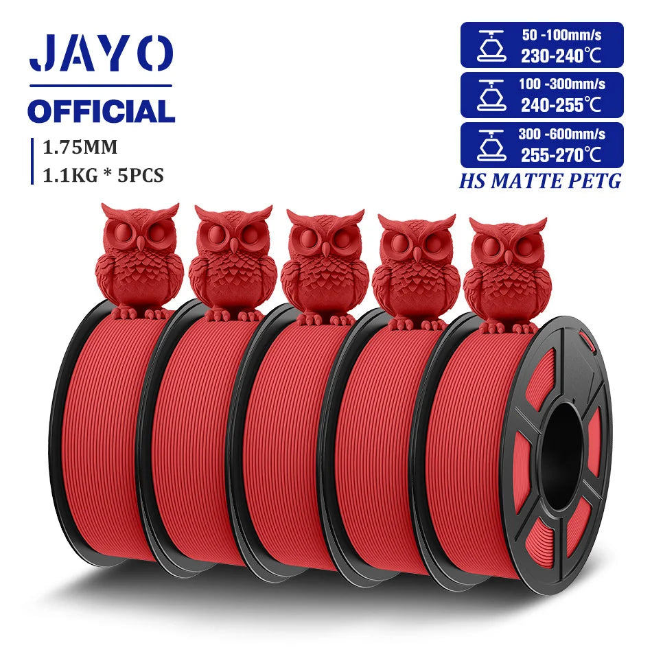 JAYO 5Rolls PETG Filament 1.75mm High Speed PETG 3D Printer Filament 1.1KG/Roll High Flow Speedy Matte 3D Printing Materials