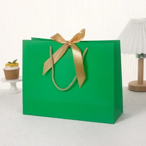 10pcs/lot High Quality Pretty Pink Gift Bag Gift Box Ornament Pajama Book Black Handle With Ribbon Paper Box Bag Kraft Packaging