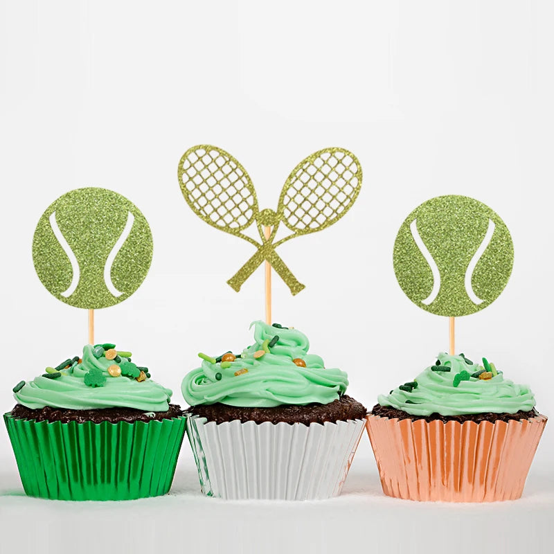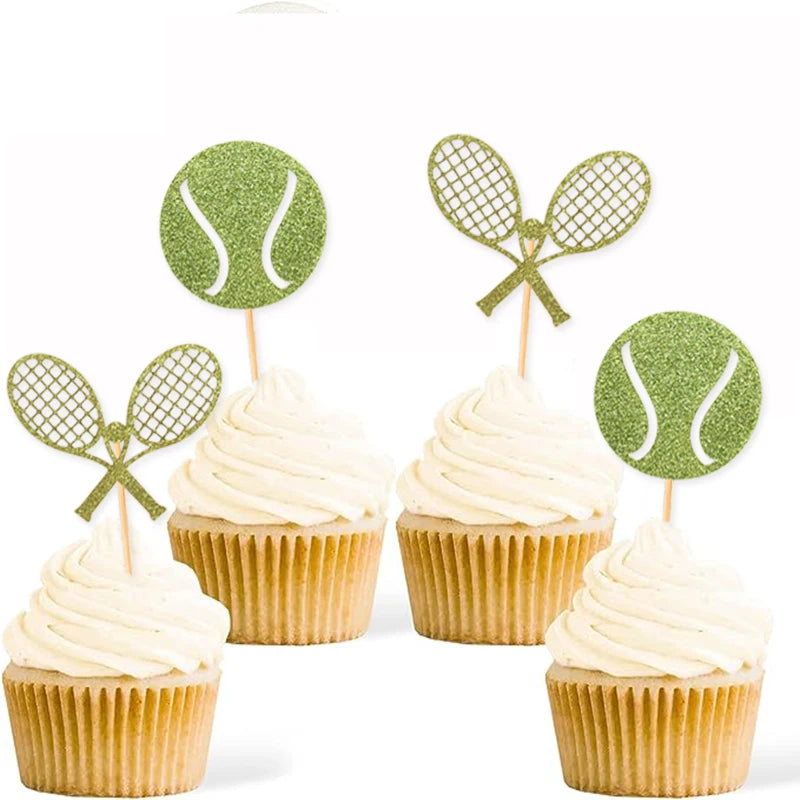 12pcs Tennis,Tennis Rackets Cupcake Topper,Tennis Themed Birthday Party Cake Decorations