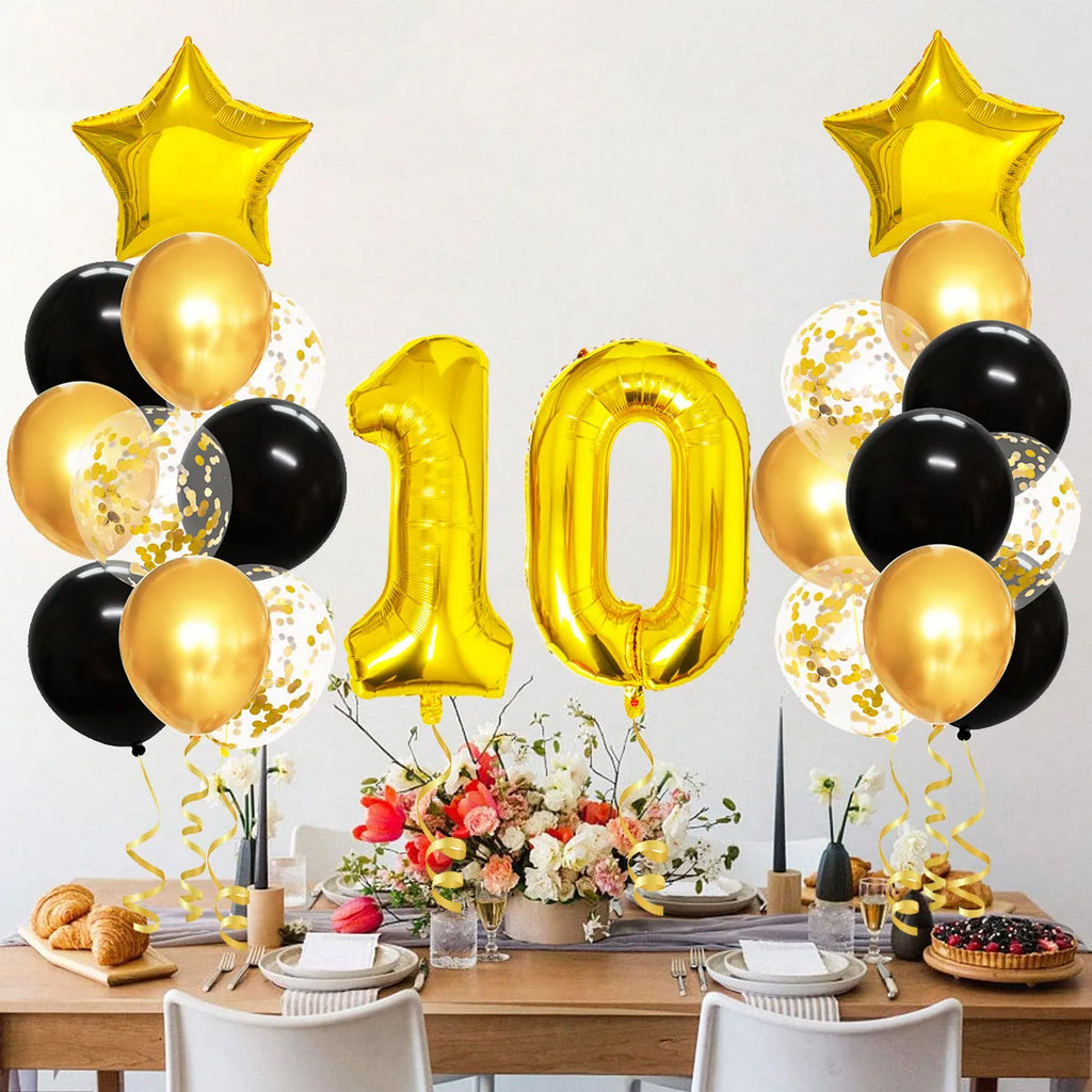 25pcs Gold Black Mixed Balloons 10th Birthday Party Decorations 10 Years Old Girl Boy Birthday Background Decor Anniversary
