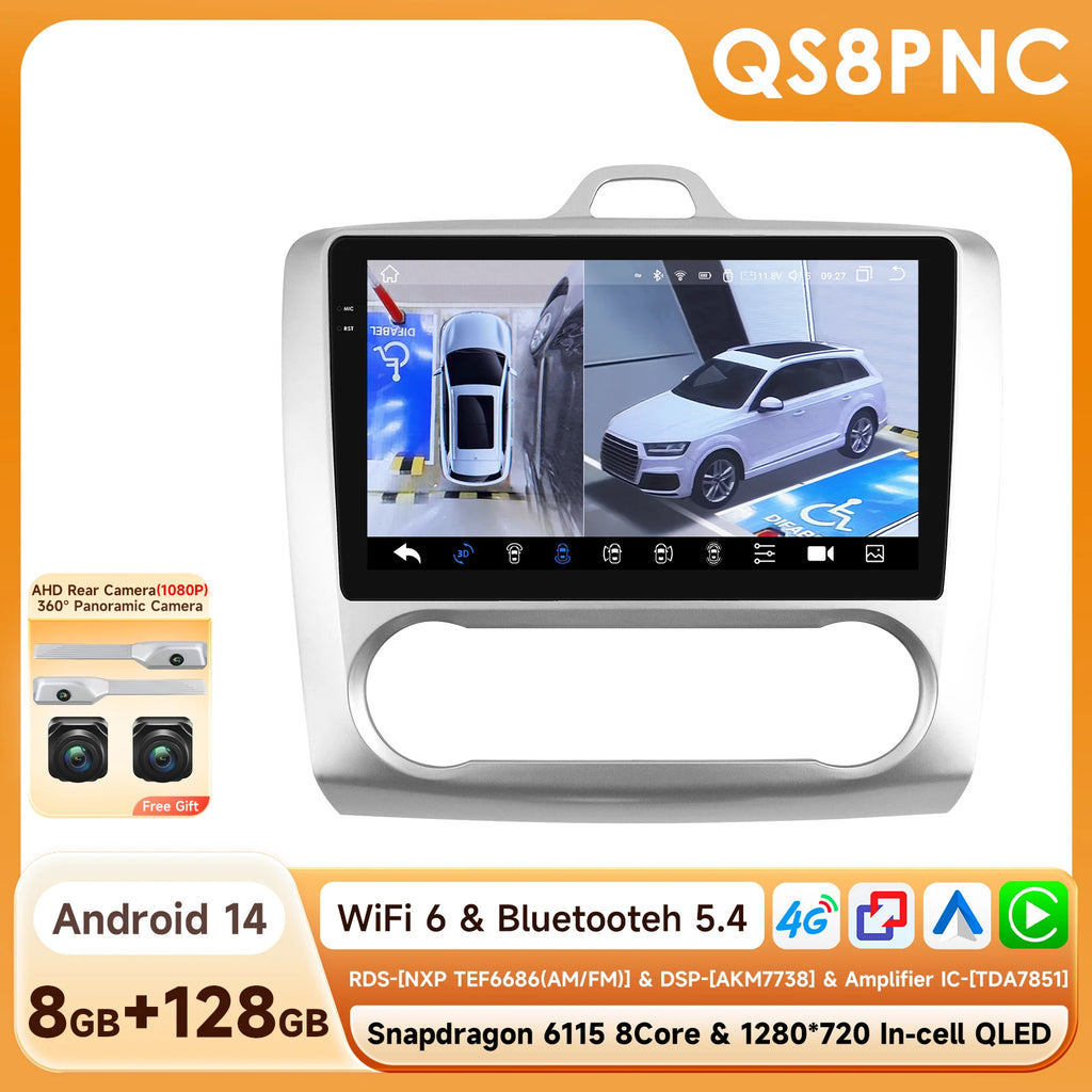 2Din 360Camera Android13 Car Radio For Ford Focus 2 Mk2 2004-2011 Car Multimedia Player Intelligent Screen autoradio Carplay SWC