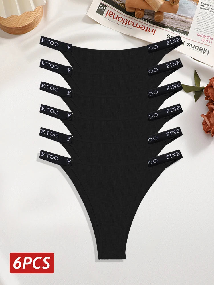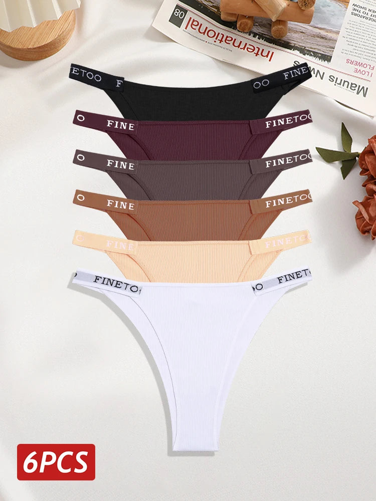 6PCS Cotton Brazilian Panties for Women Sexy Low Rise T-Back Panties Letter Elastic Waist Underpants Female Underwear Intimates