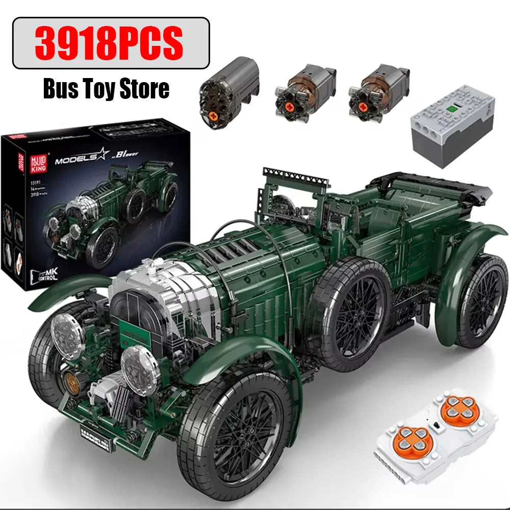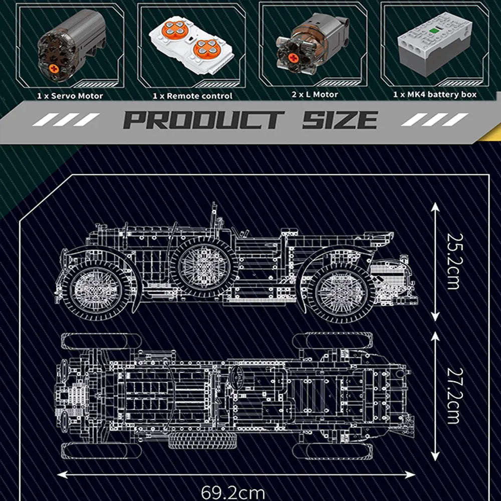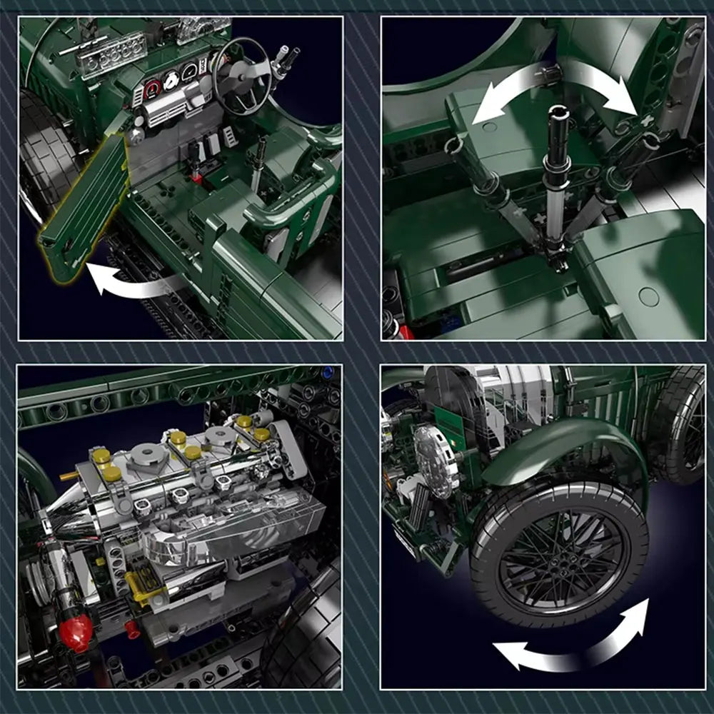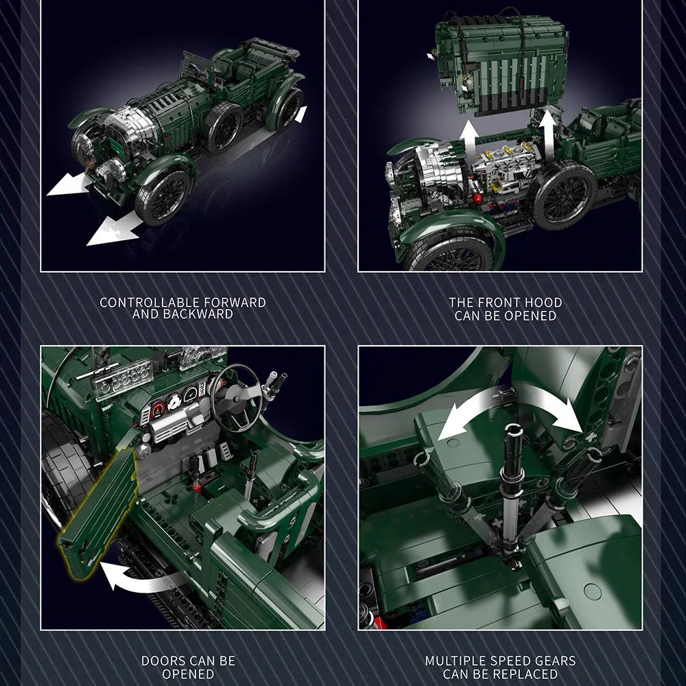Classical Technical Green Blower Car Model Remote Control Vintage Car Building Blocks Toy Collectible for Adults Christmas Gifts