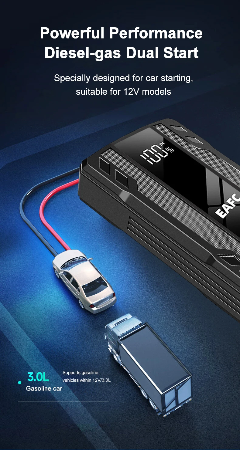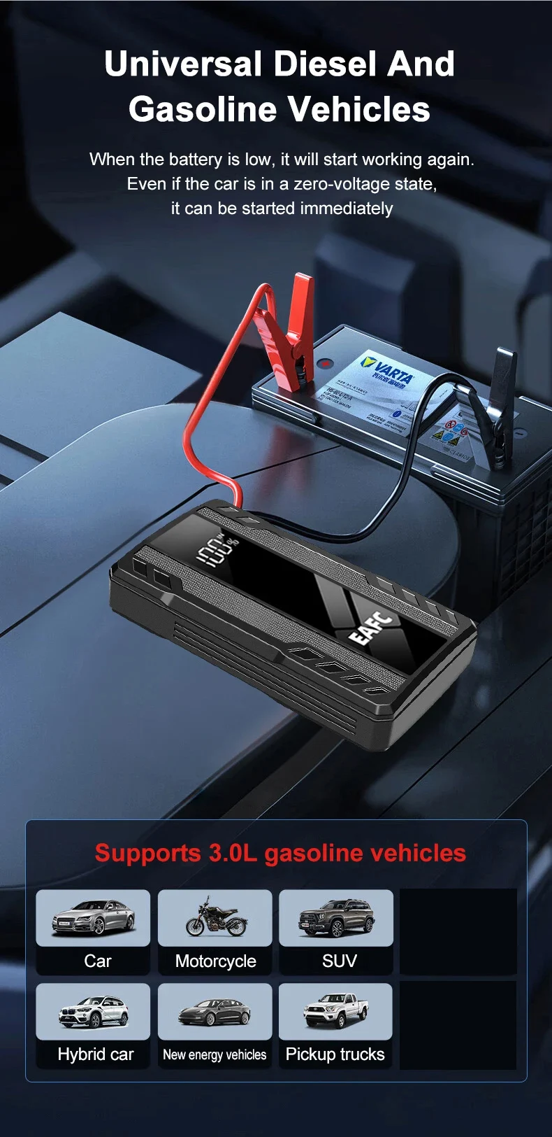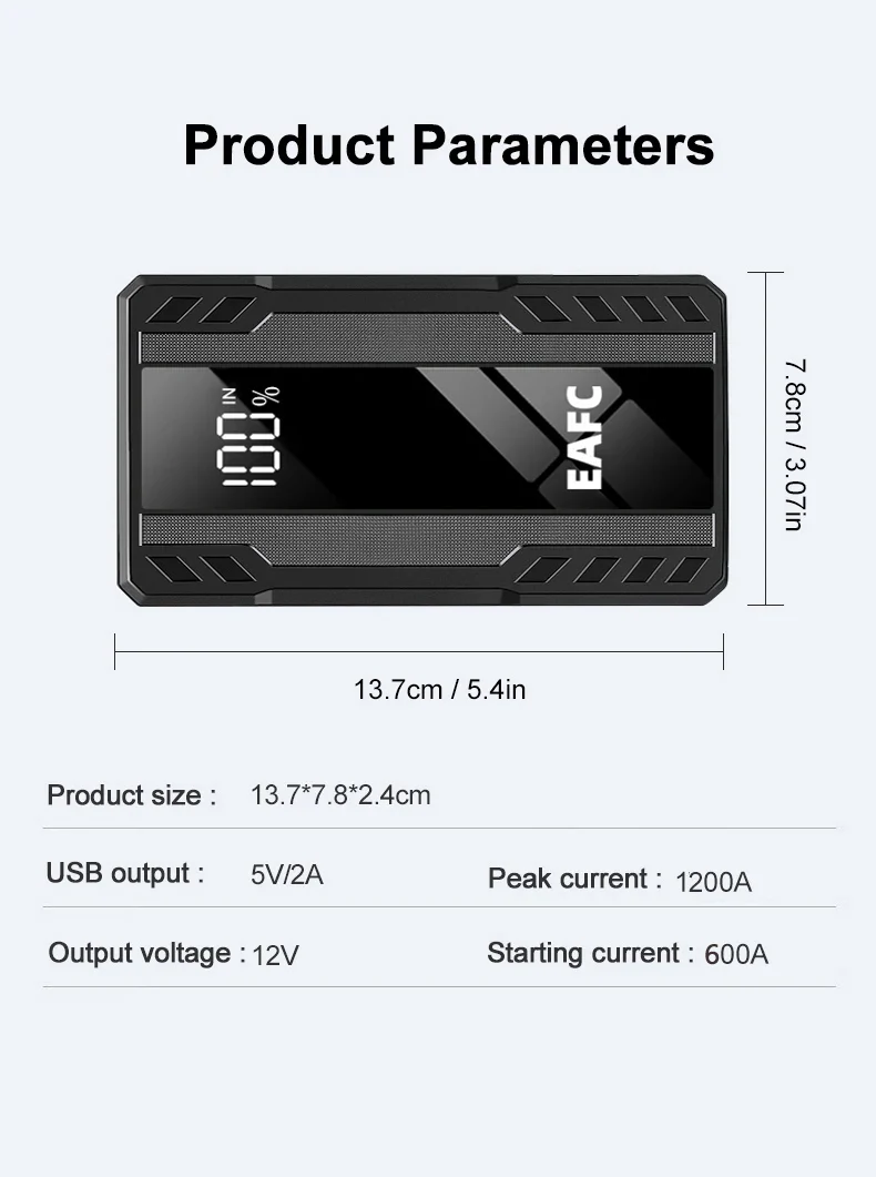 This device with a peak current of 1200A is suitable for gasoline vehicles below 3L and cannot start diesel vehicles.