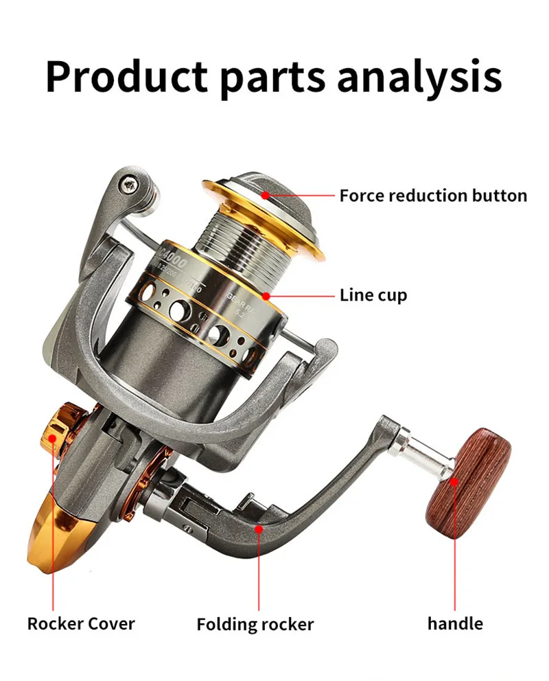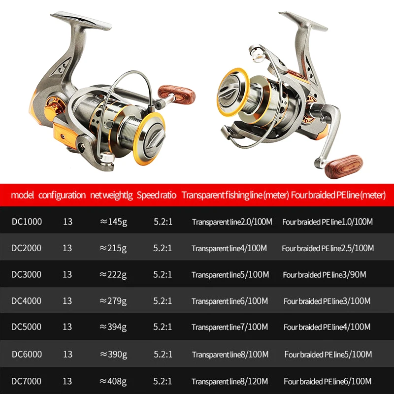 Professional Spinning Fishing Reel 13BB Fishing Coil Wooden Handshake 1000-7000 Series Metal Spining Fishing Reel Wheels