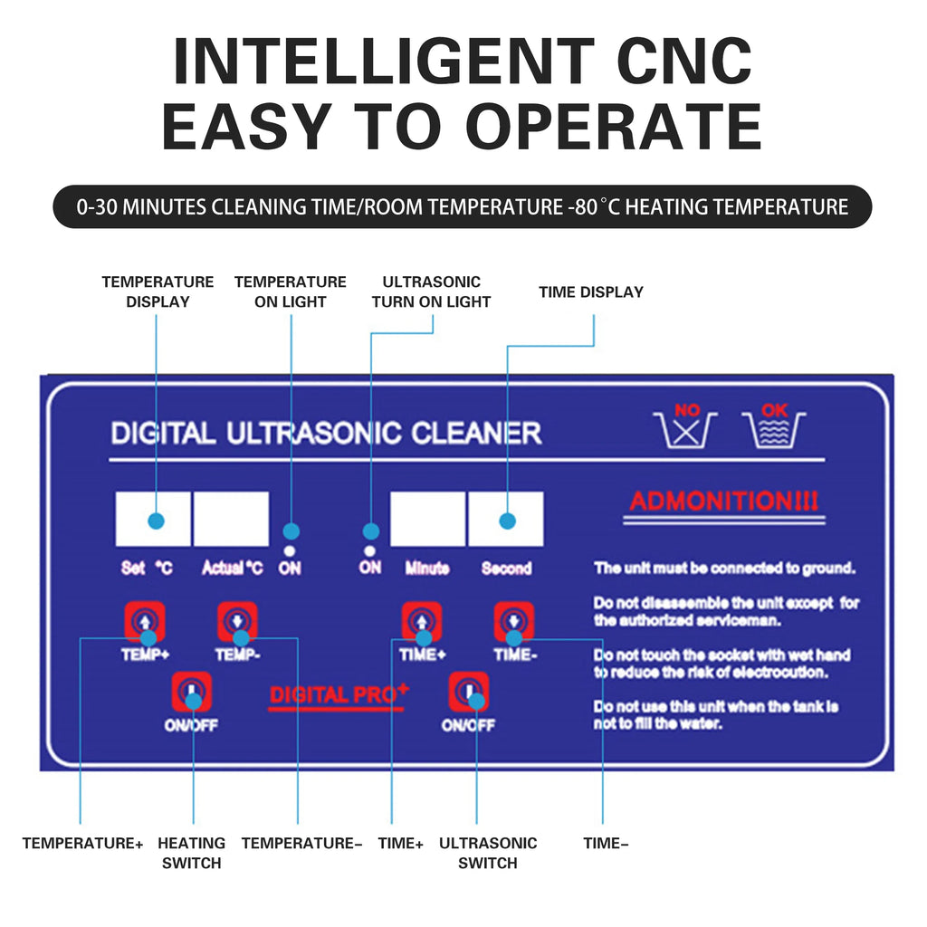 【WIDELY USED】- Professional heated ultrasonic cleaner, easy to move and store. Widely used for electronics factories, jewelry factories, chemical laboratories, dental clinics, restaurants, repair shops, homes, etc.