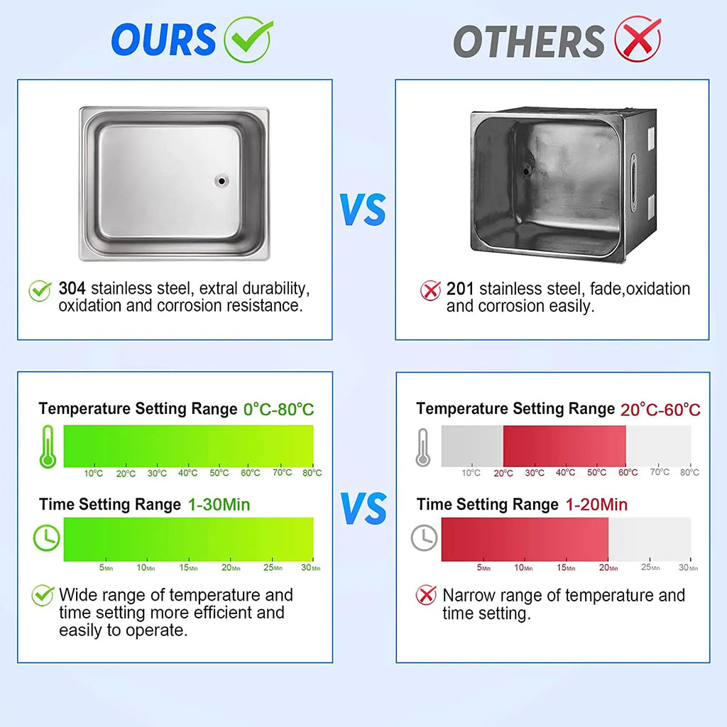 【LED DISPLAY】- Digital control panel,timing and heating temperature control function.0-30min and 0-80℃ adjustable.